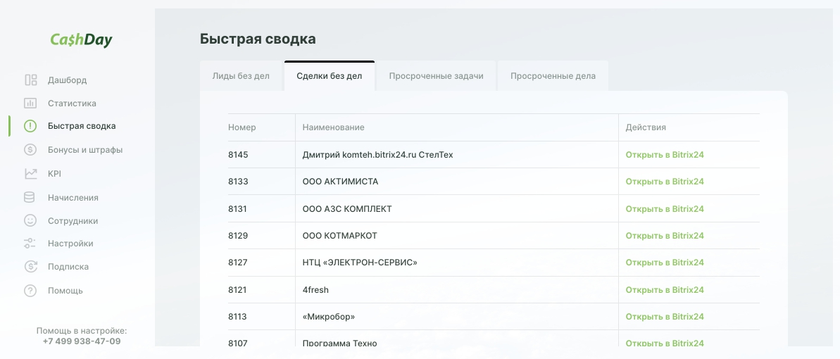 - Мотивирует не оставлять «сделки без дел»