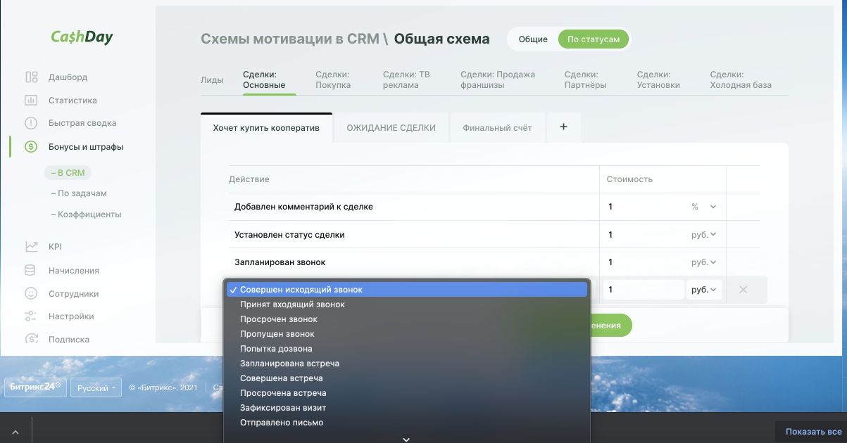 - Рассчитывает зарплату по действиям в CRM