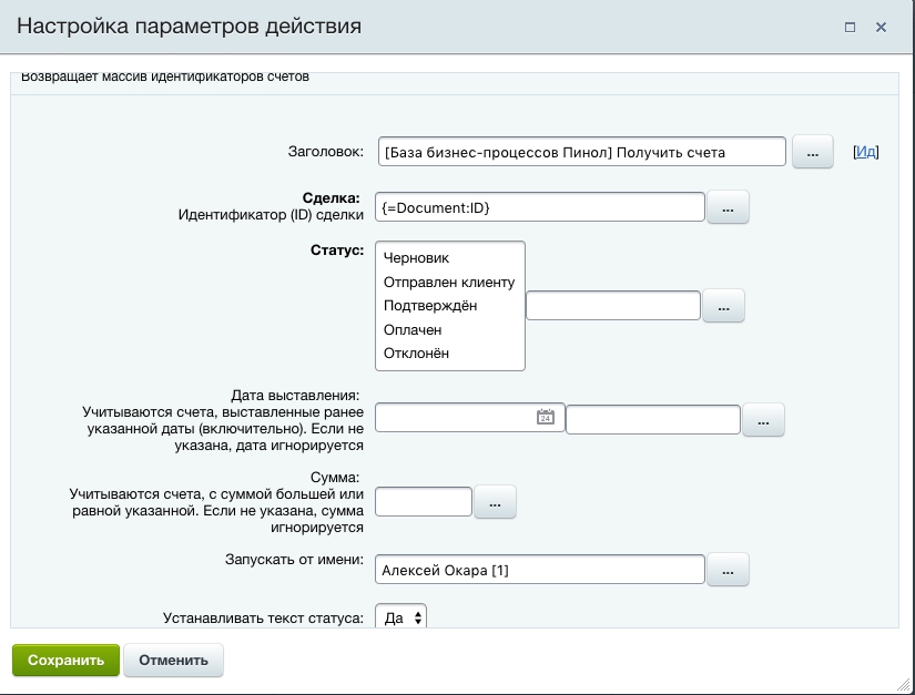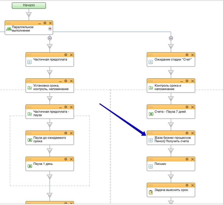 С помощью него вы сможете увидеть и поднять в бизнес-процессе на Сделке все счета, которые не оплачены по данному контрагенту, и далее дожать их по данному бизнес-процессу.