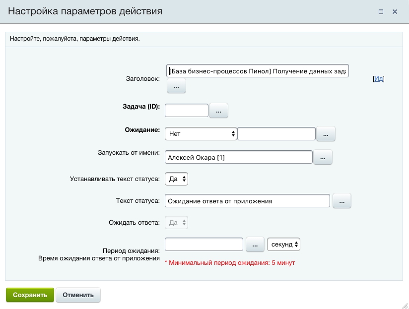 Действие удобно применять в том случае, если нужно продолжить выполнять действия бизнес-процесса после постановки задачи и на определенном этапе бизнес-процесса понять статус исполнения поставленной задачи.