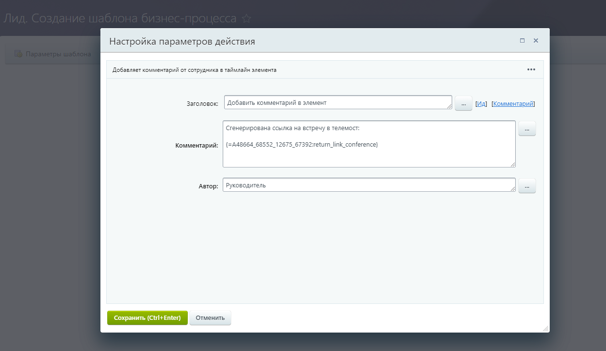 В новой версии приложения мы обновили интерфейс установщика приложения и добавили возможность создавать ссылку на встречу и планировать встречу через кнопку Процессы в карточке CRM. Вся история взаимодействия с приложением сохраняется на таймлайне сделки CRM.
