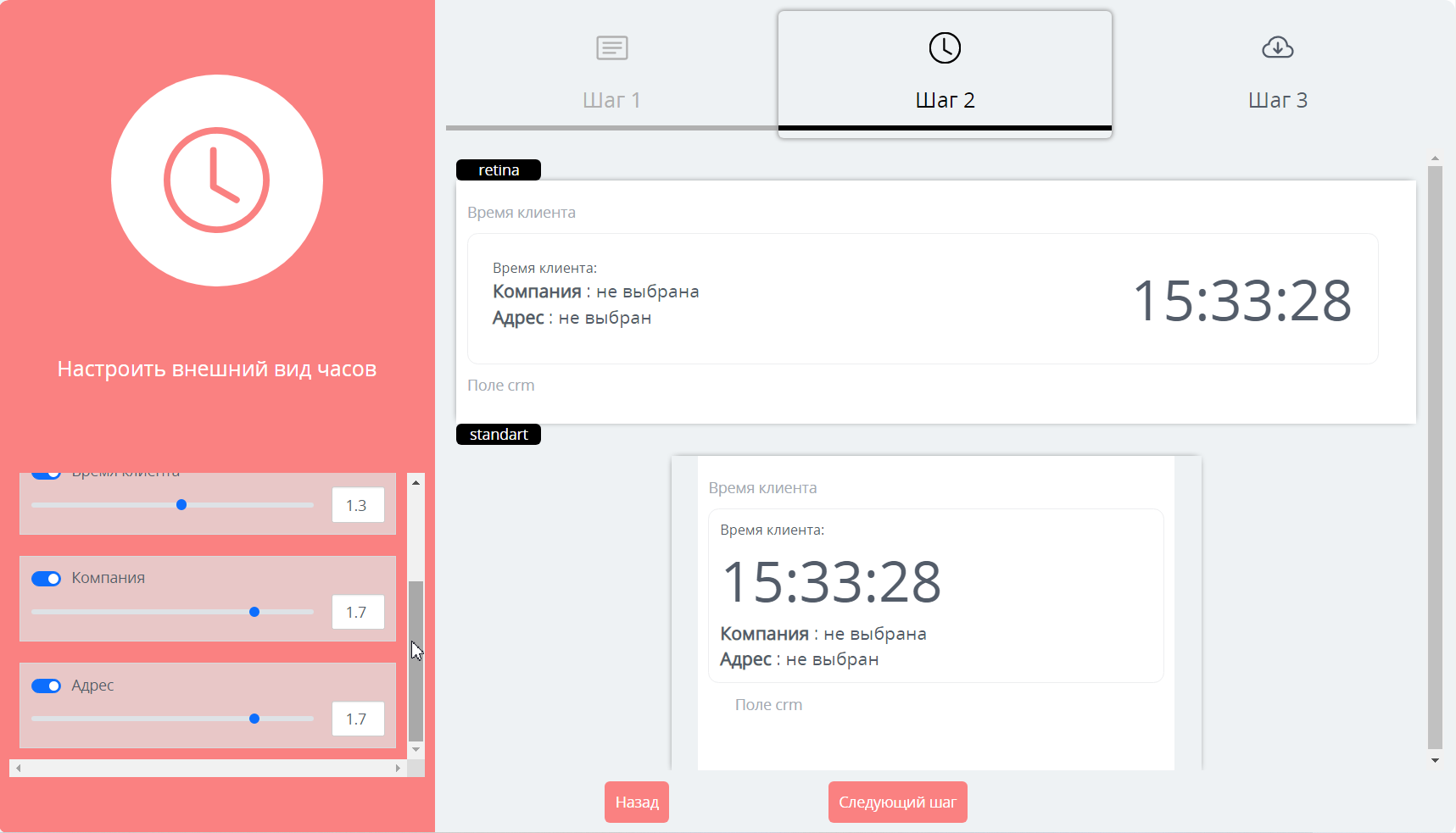 2. Настройка внешнего вида самой встройки приложения Время клиента в CRM;