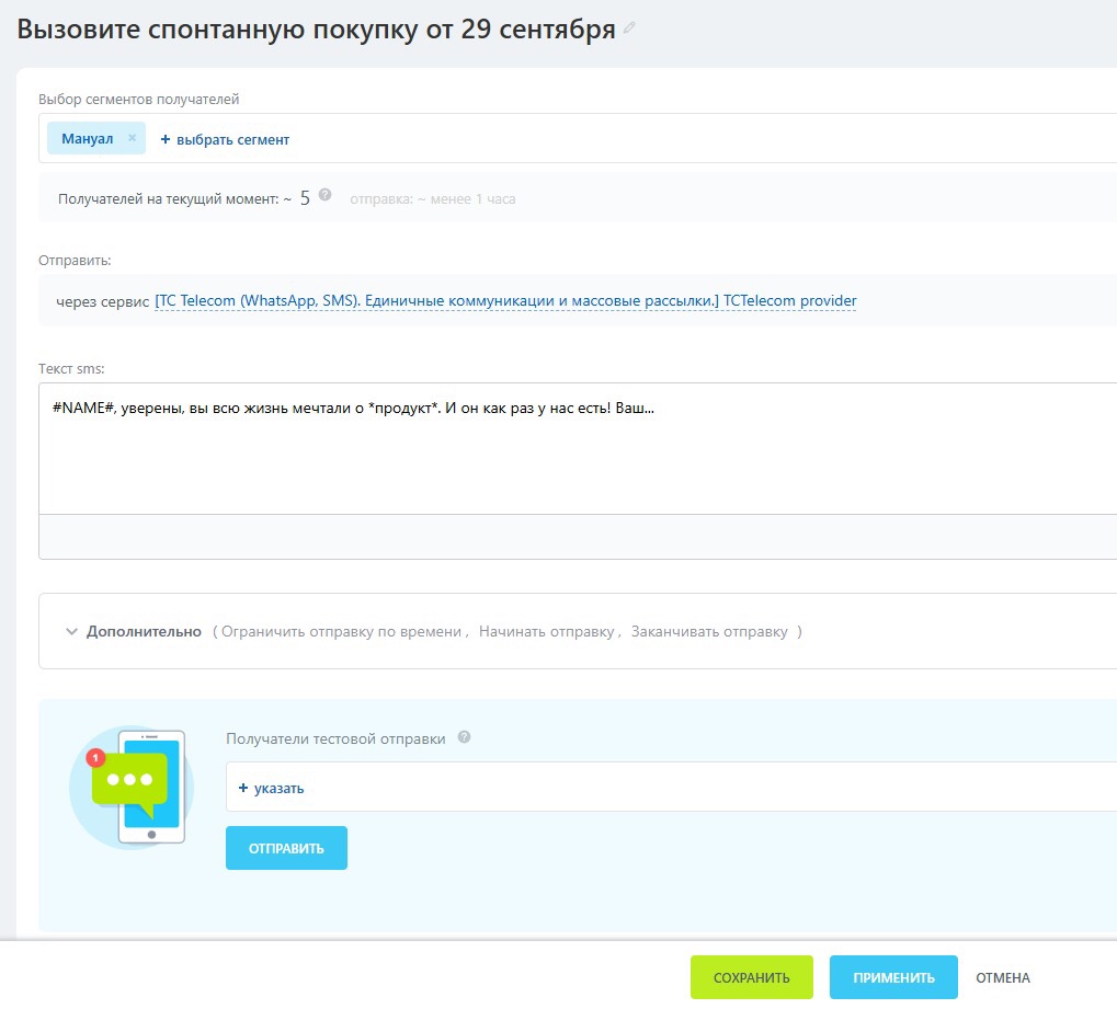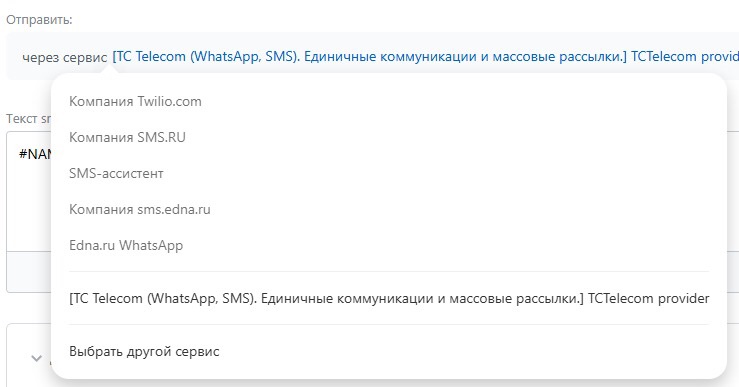TC Telecom (WhatsApp, SMS). Единичные коммуникации и массовые рассылки.