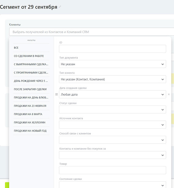 - Отправка единичных сообщений из карточки лида, сделки или контакта.