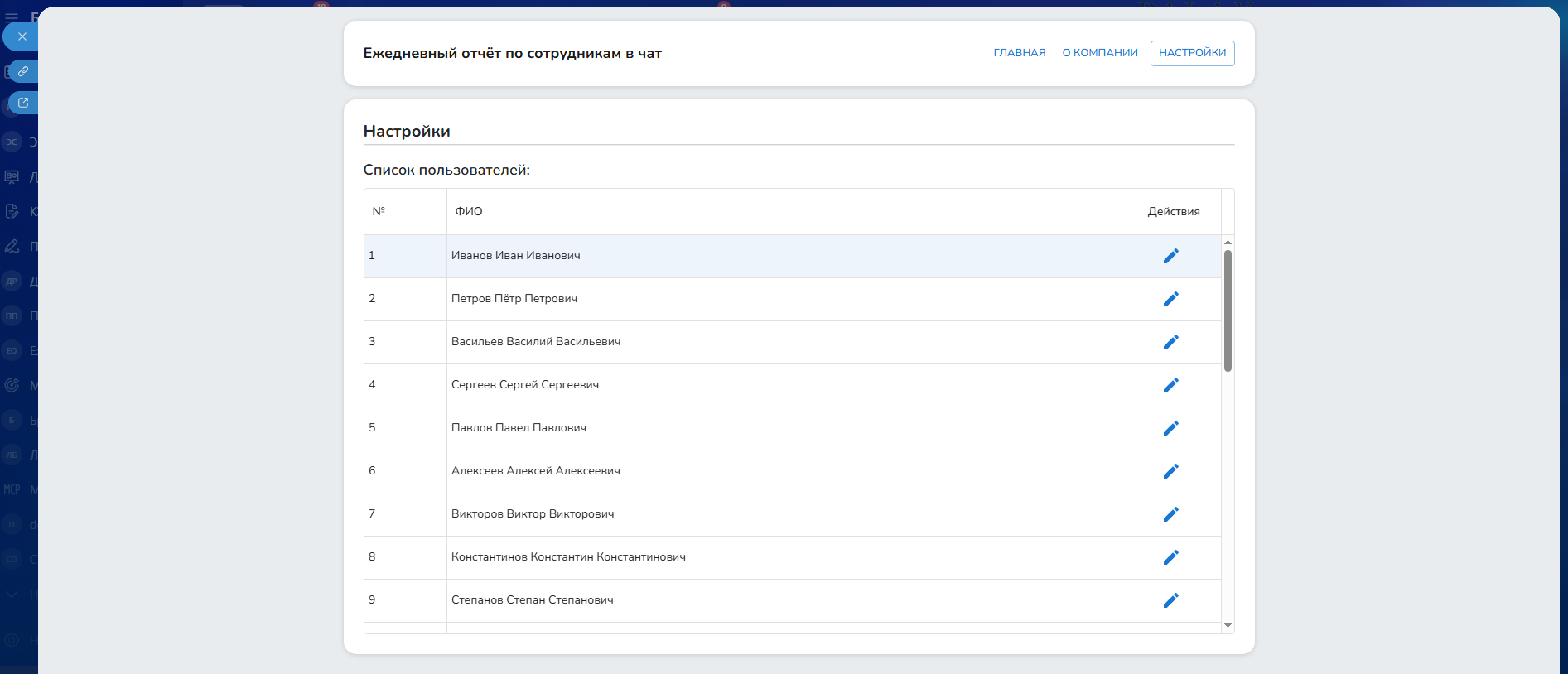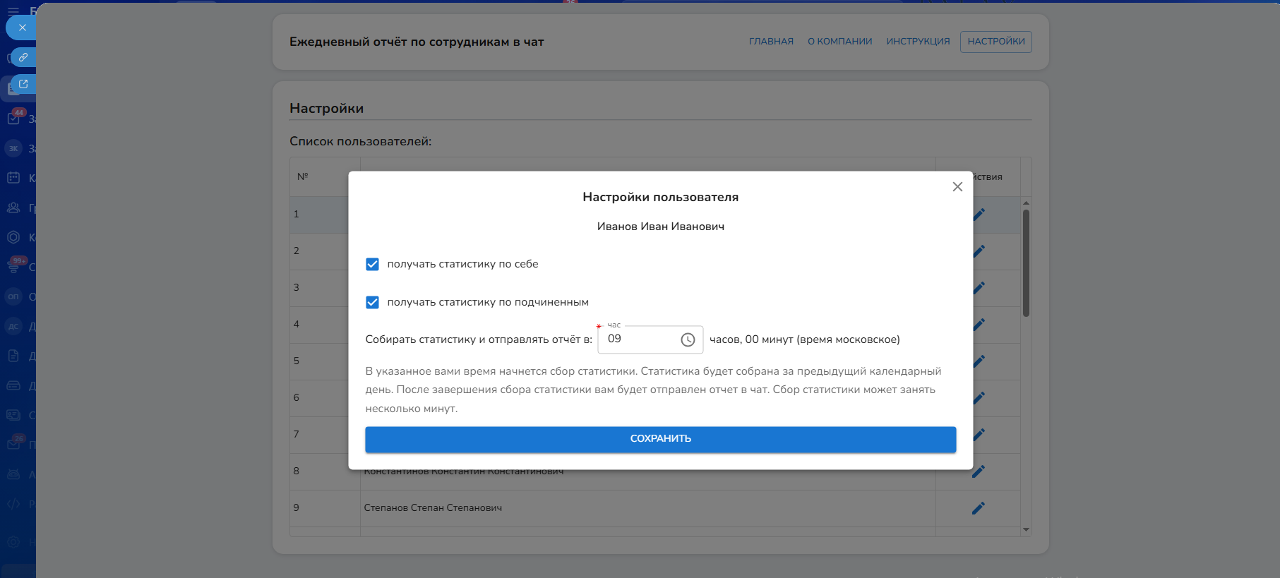 Ежедневный отчёт по сотрудникам в чат