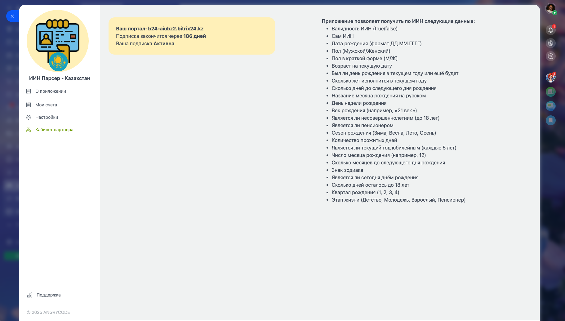 Приложение добавляет в систему робота который вернет вам данные на основе ИИН.