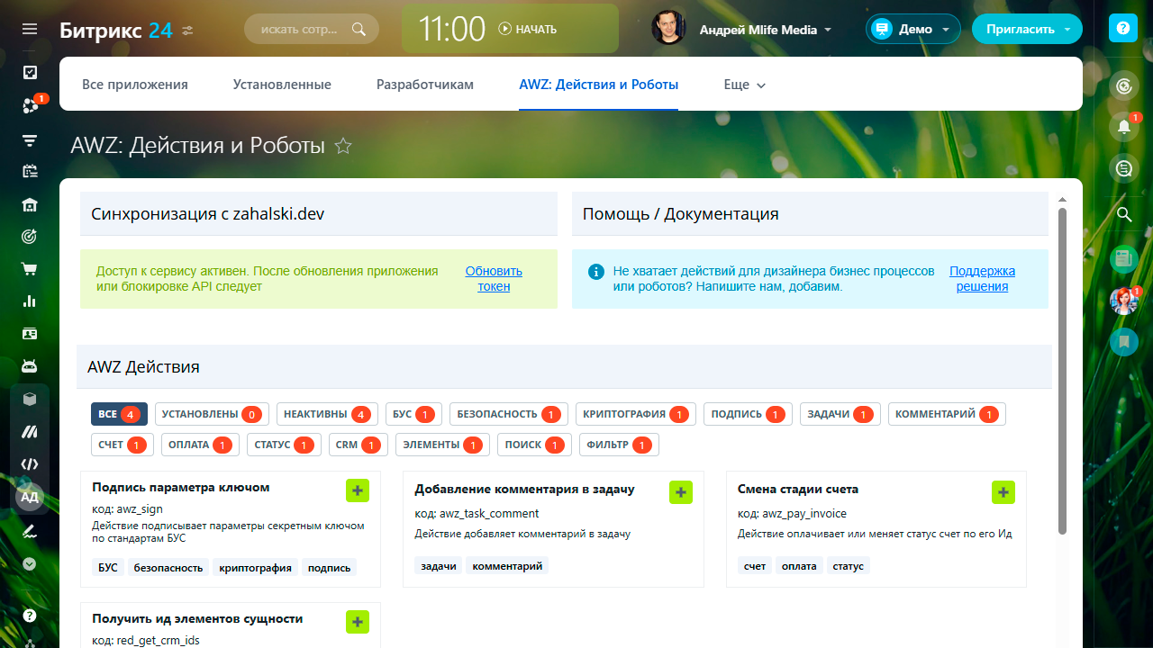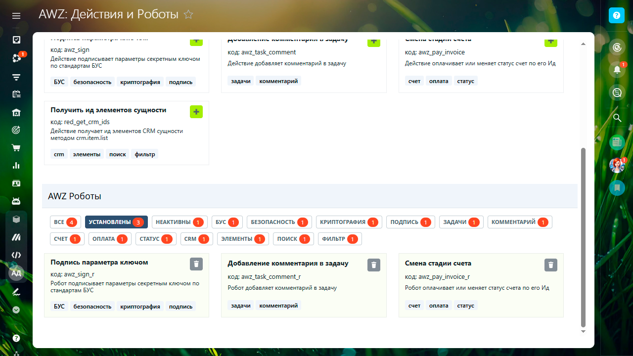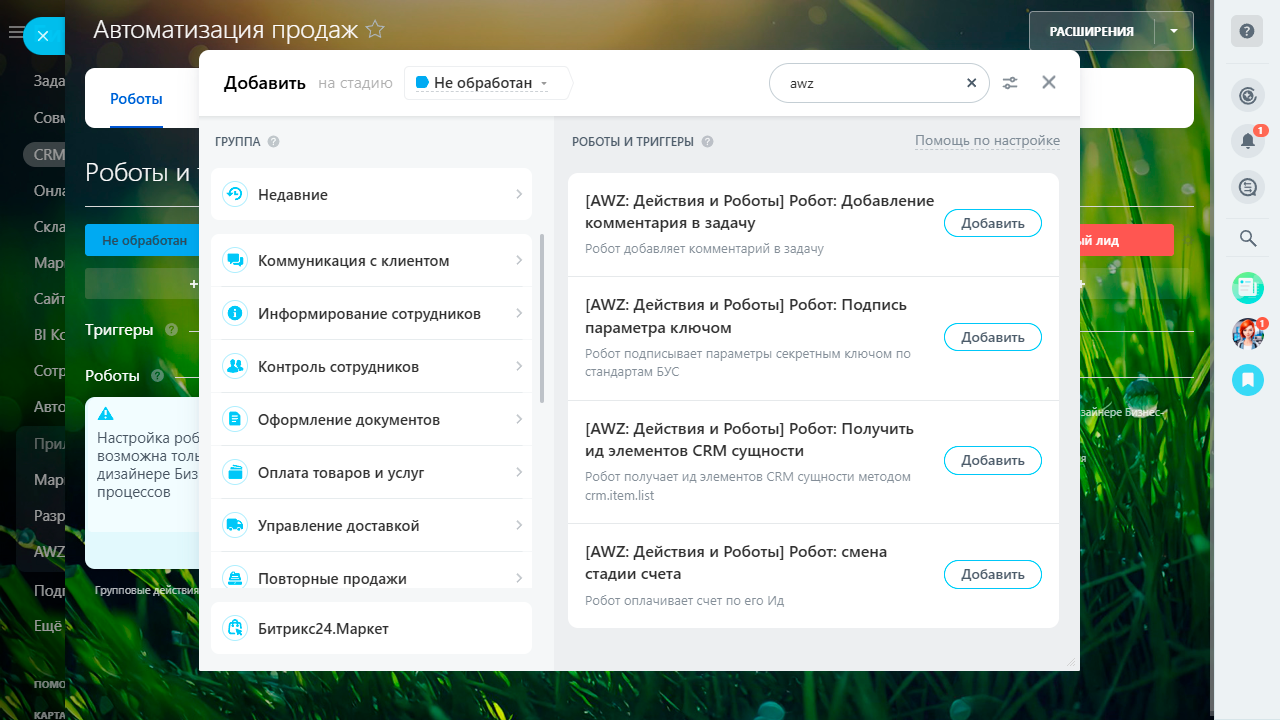 Приложение AWZ: Действия и Роботы - расширяет стандартный функционал бизнес-процессов.