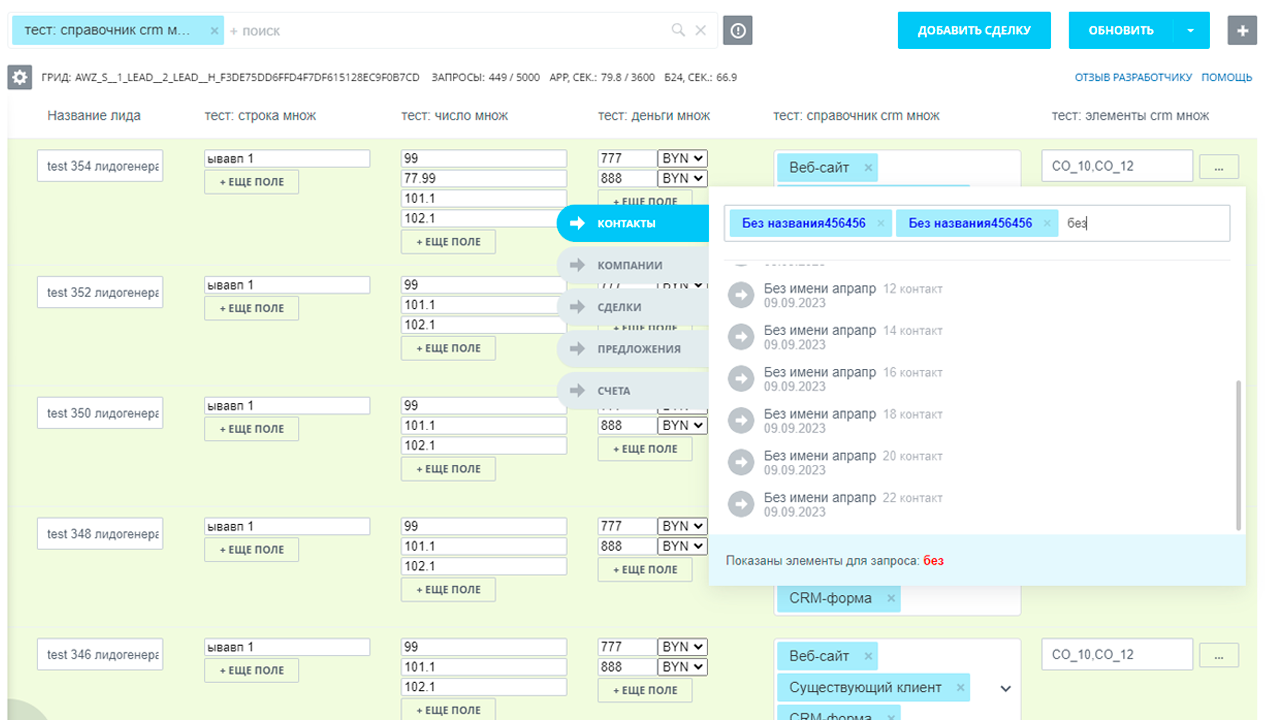 - Вывод списков элементов по фильтру с автоподстановкой из полей CRM сущности.