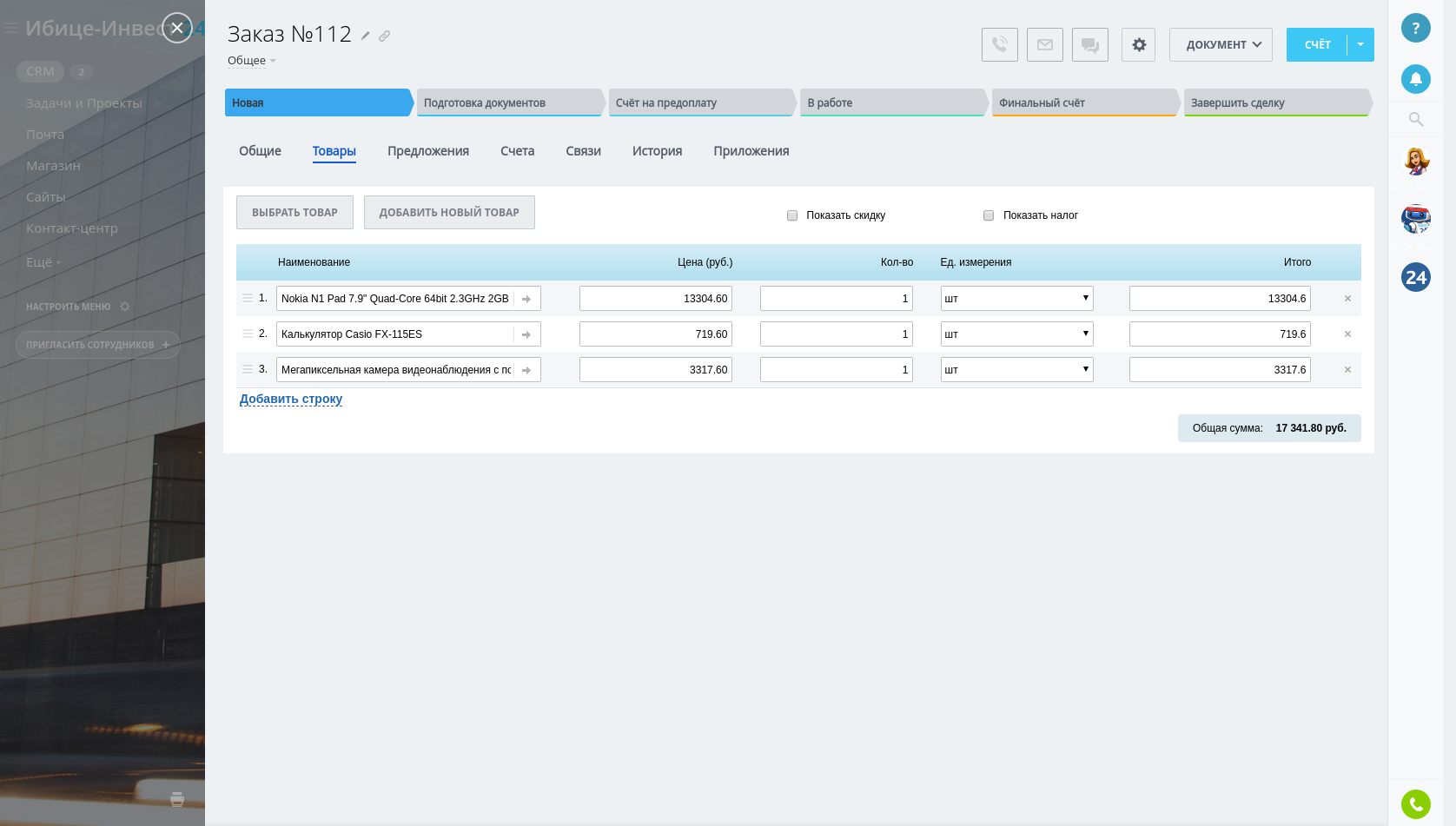 - Автоматическое создание счетов по сделкам.