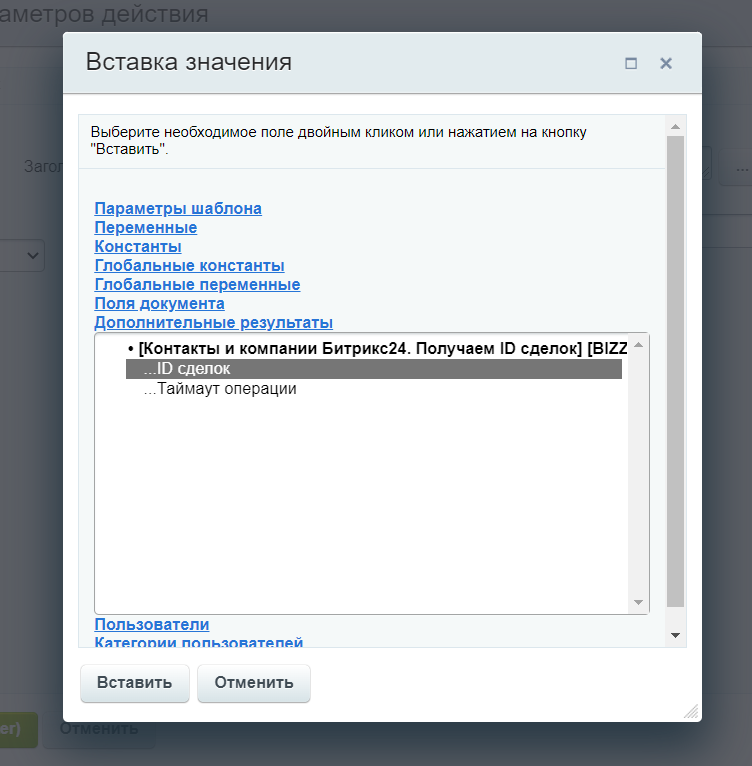 Активити бизнес-процесса. Позволяет получить множественное значение ID сделок контакта или компании и возвращает их в дополнительные результаты.
