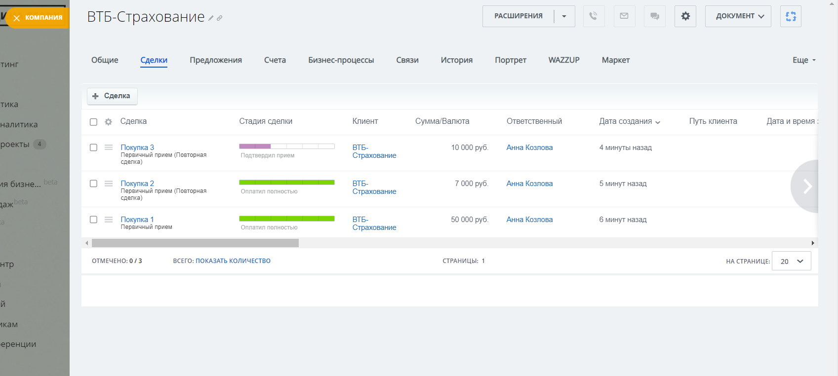 2. Для подсчета общего количества сделок контакта или компании через бизнес-процесс.