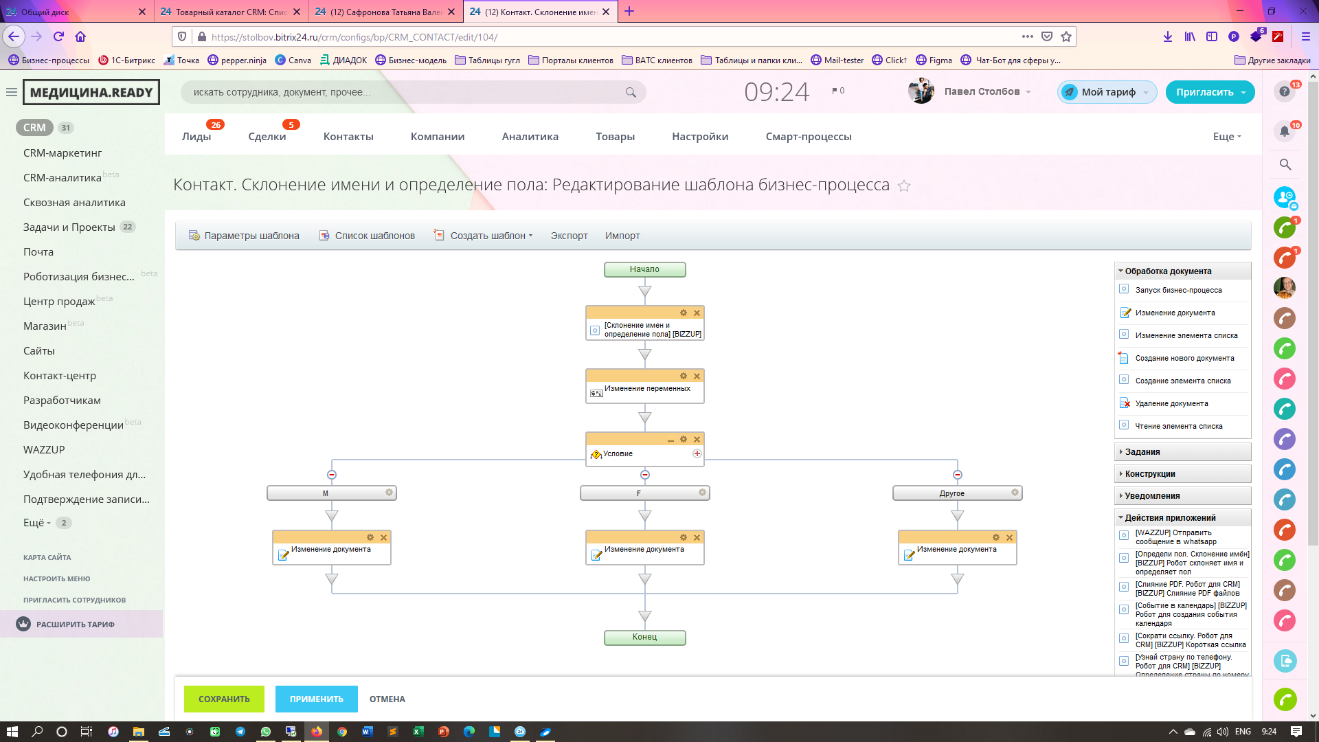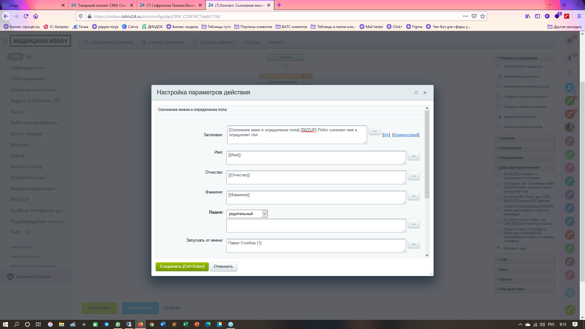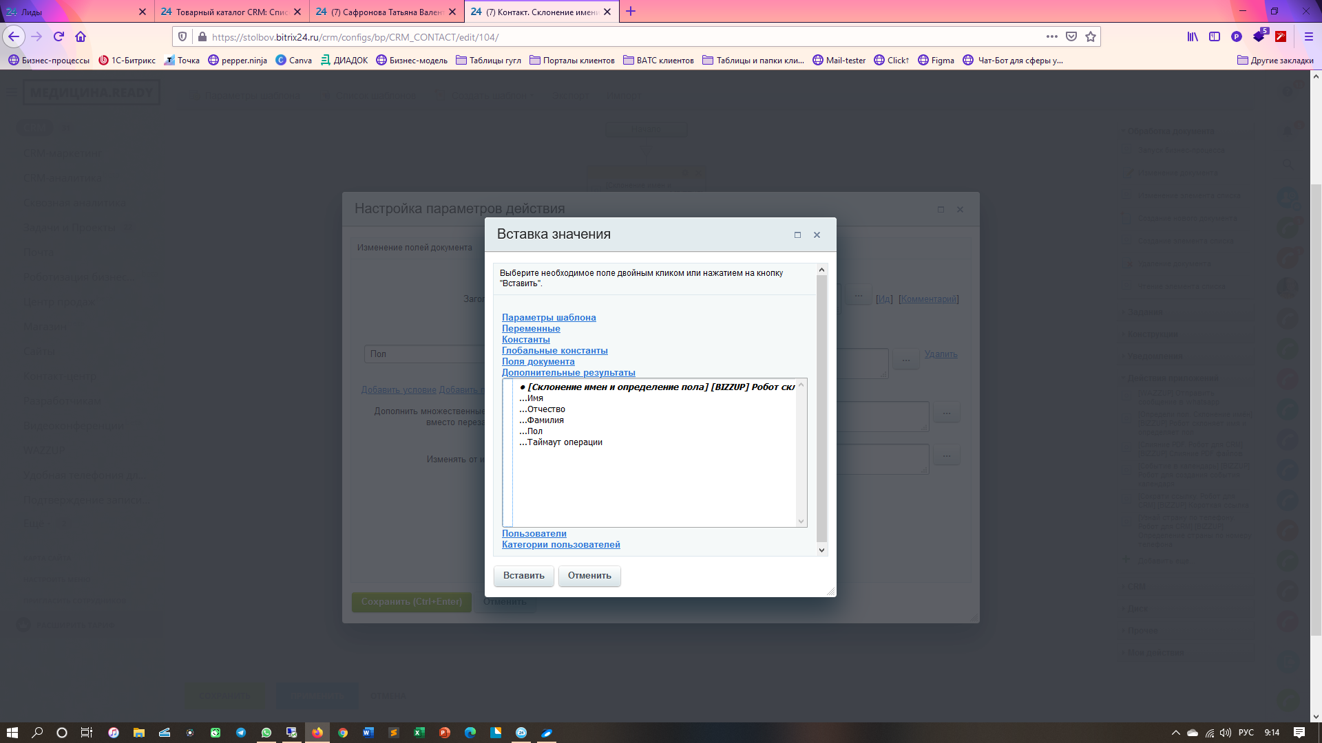 Скачать образец бизнес-процесса (процесс добавит поле "пол" в карточку контакта): https://bzzp.ru/s8qg