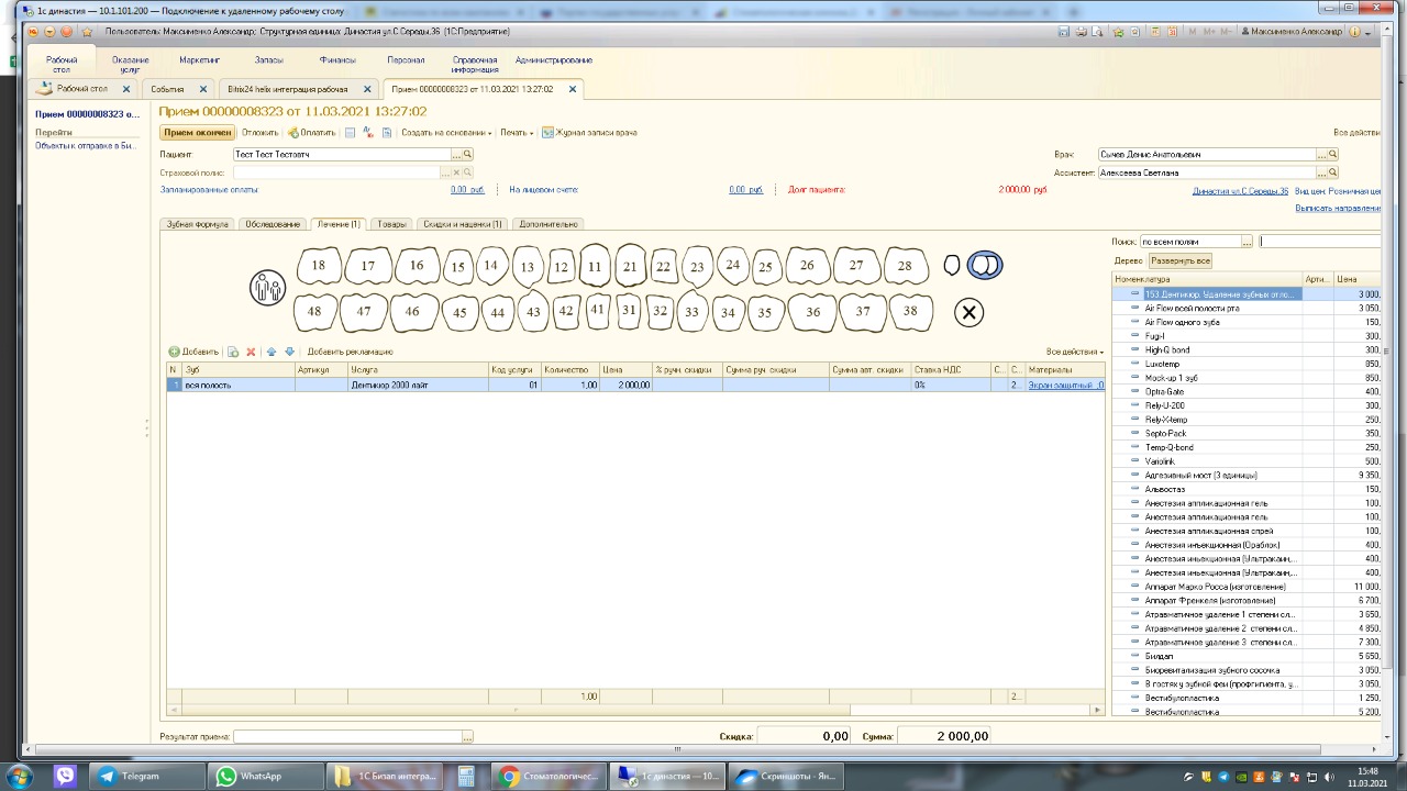 - Передаем перечень оказанных услуг со стоимостью по совершенной записи на прием