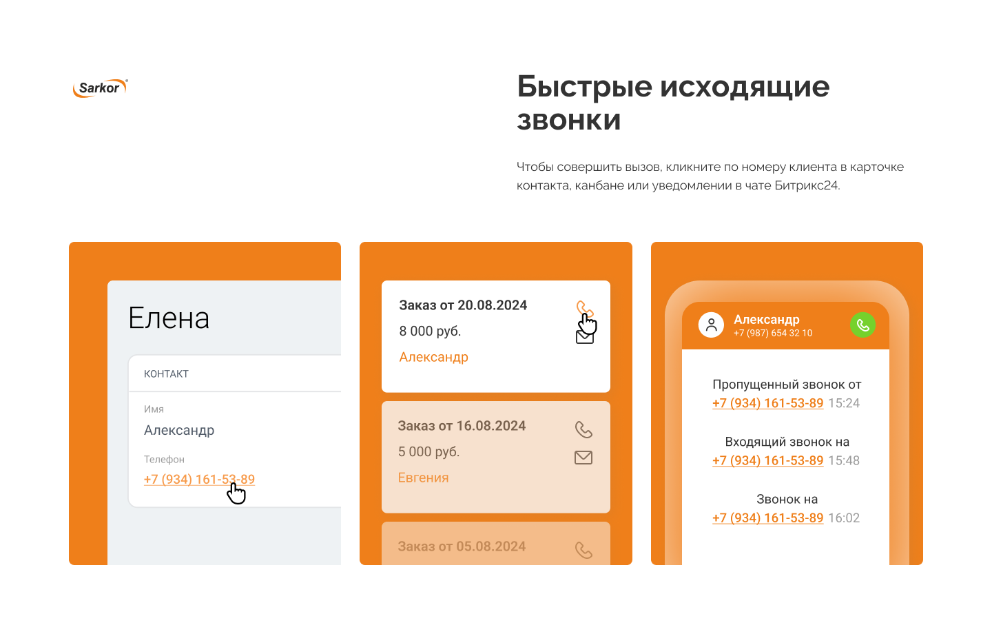 - Всплывающие карточки клиентов при входящих звонках;