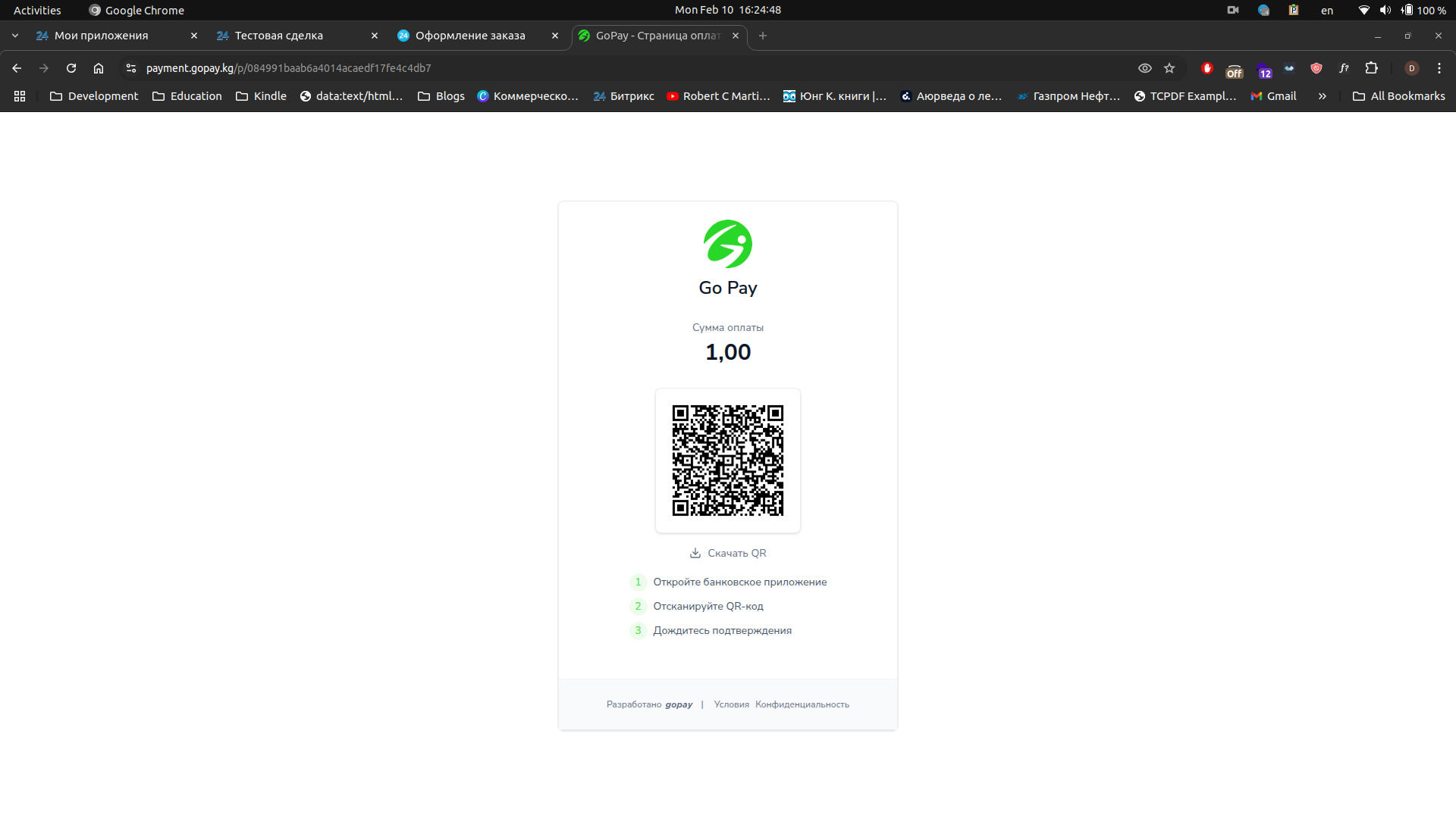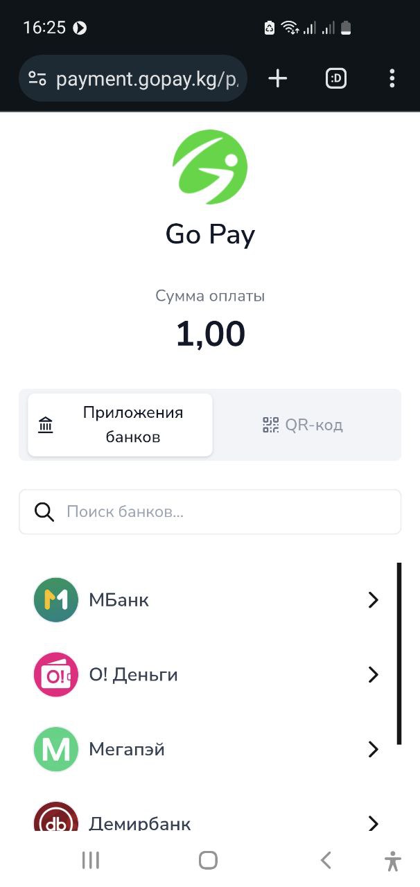 Go Pay - единое платёжное решение для бизнеса Кыргызстана на базе национальной системы ELQR. Оптимизируйте процесс оплаты до 2 кликов через платёжные ссылки и QR-коды.