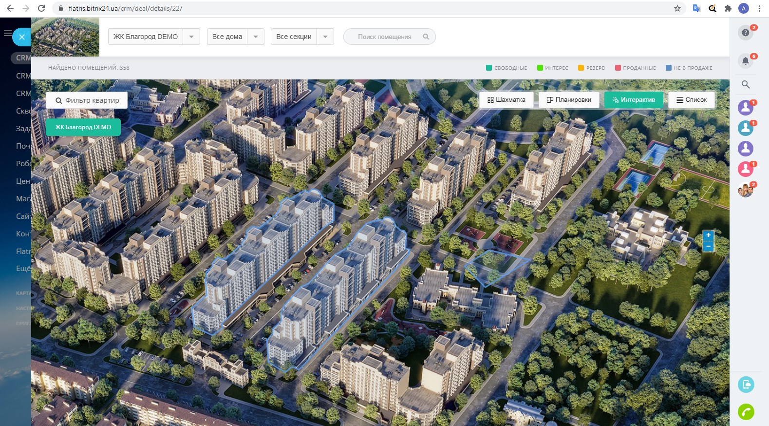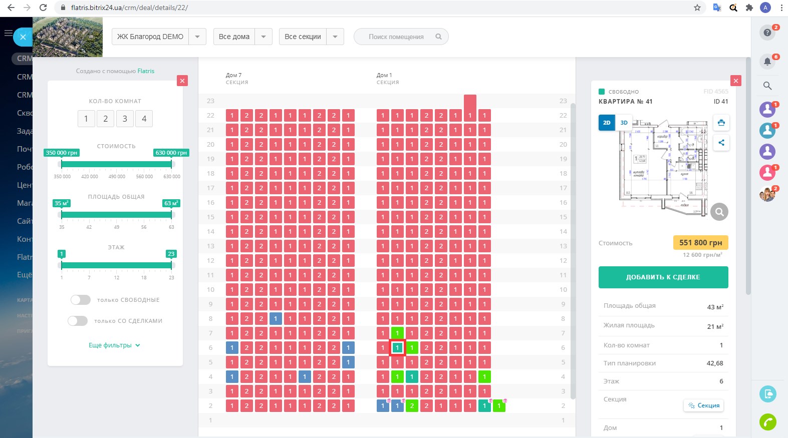 Чтобы добавить квартиру в сделку, вам необходимо нажать кнопку "Открыть шахматку".