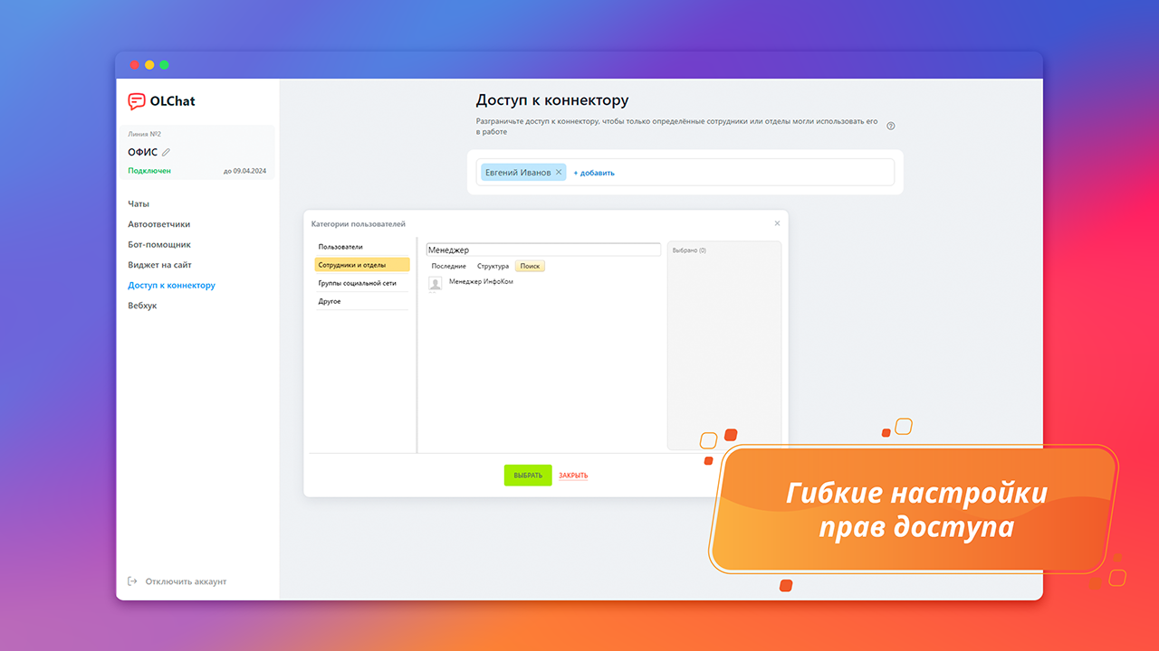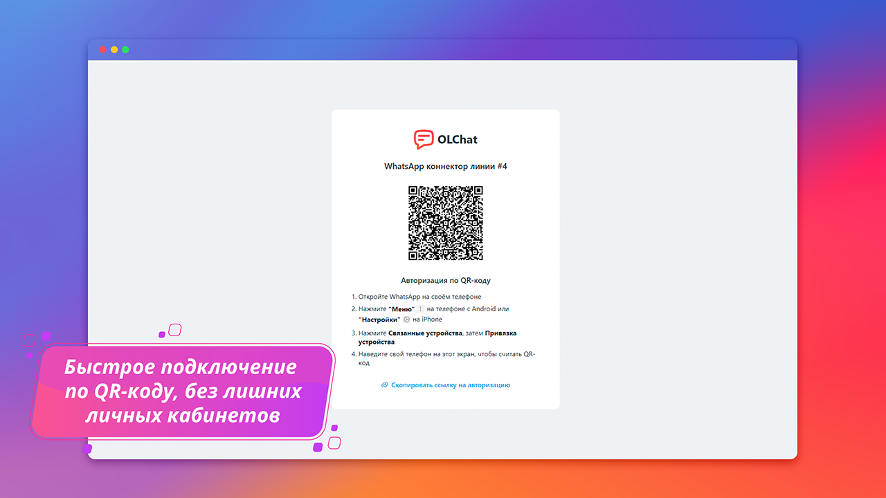 Подробная документация по подключению и использованию: https://docs.olchat.io/