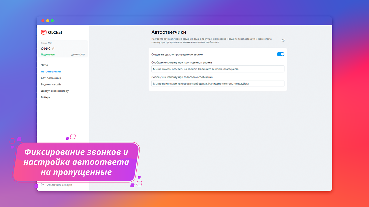 - Настройте автоответ при пропущенном звонке и создайте дело.