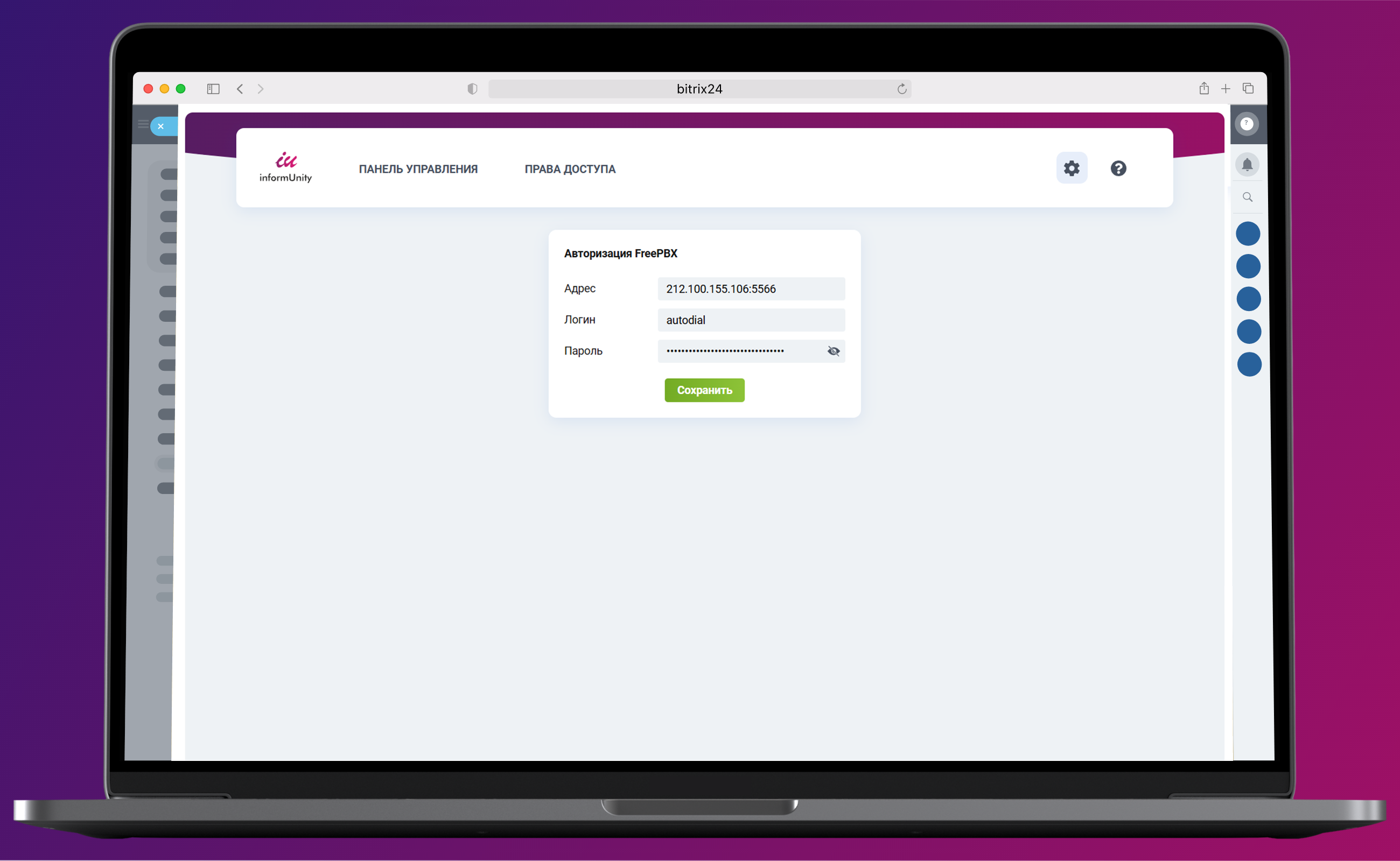 Разработано командой InformUnity, которая специализируется на связке Asterisk и Битрикс24 с 2017 года.