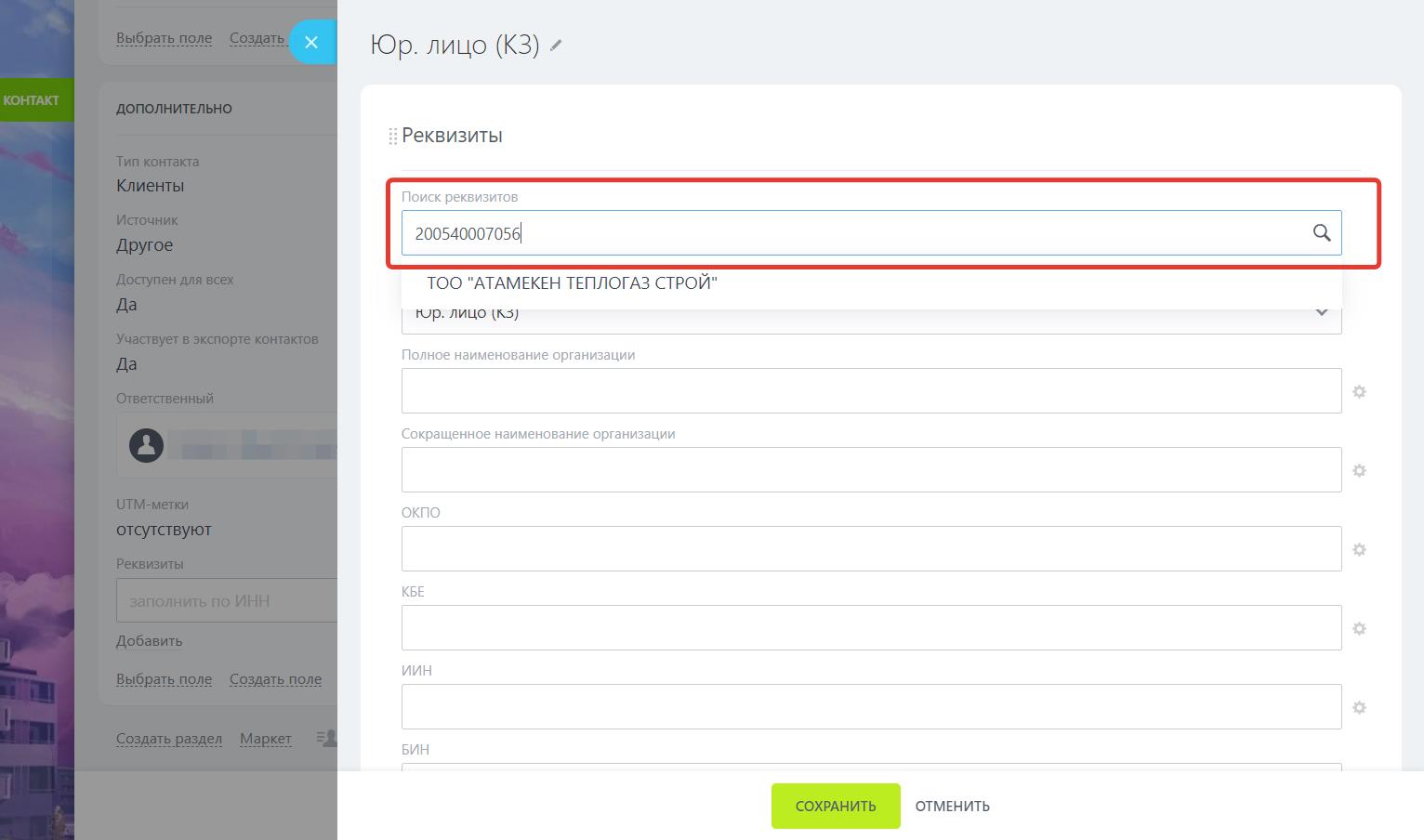По введённому БИН или ИНН плательщика получает юридическую информацию для автоматического заполнения реквизитов следующими данными: