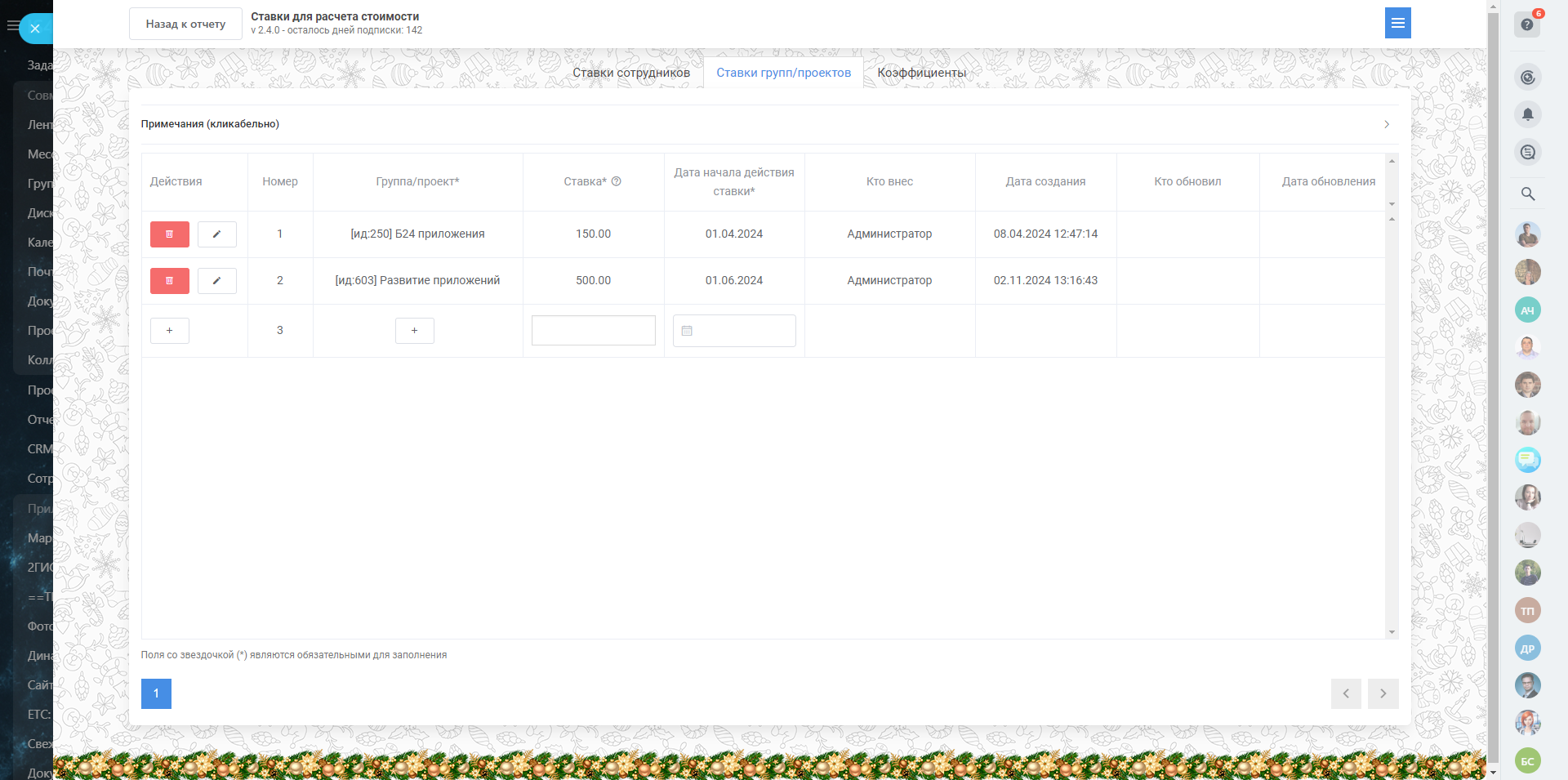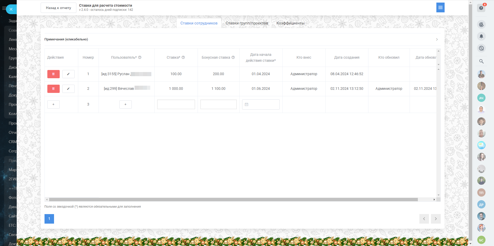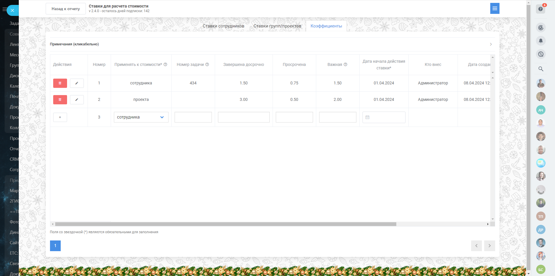 - Автоматический расчет стоимости задачи на основании ставок и коэффициентов, настраиваемых для отдельно взятого сотрудника либо группы