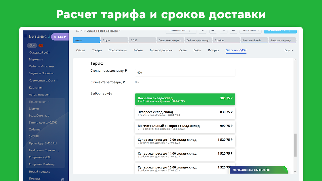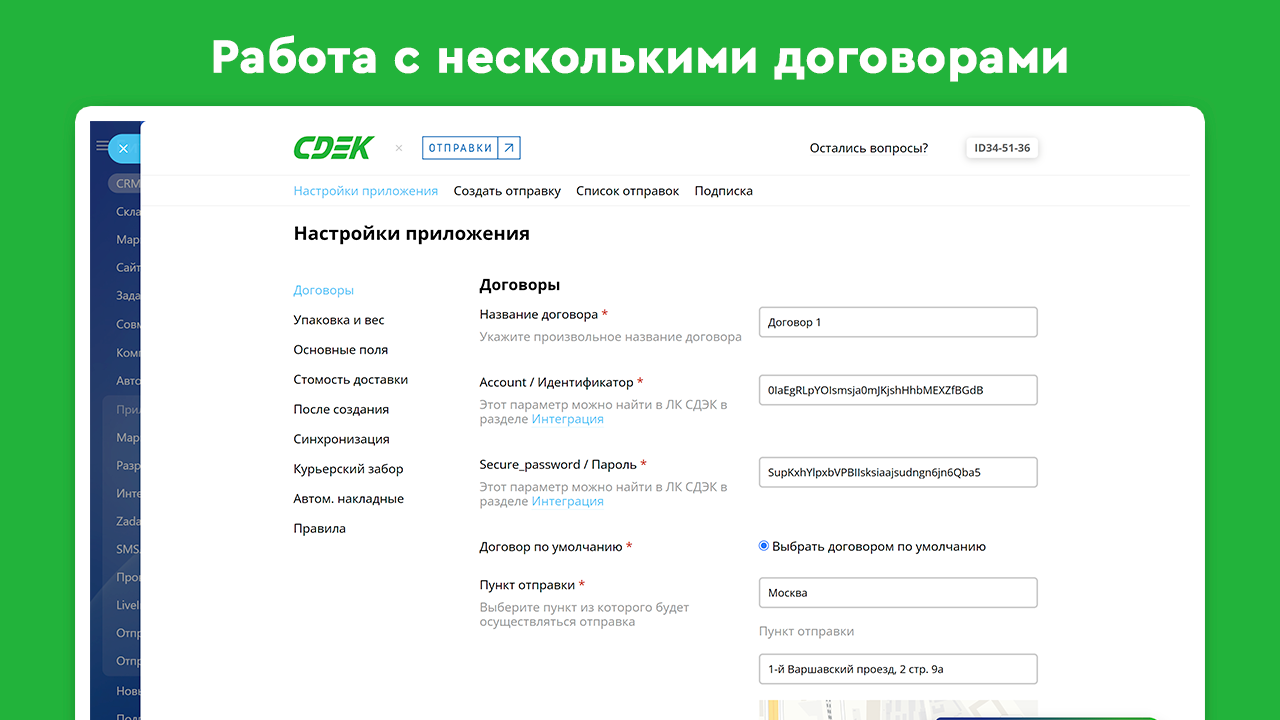 - Получать основные данные в сделку после создания (трек-номер, ссылка на накладные, ШК, стоимость доставки, информация о ПВЗ, и др.)