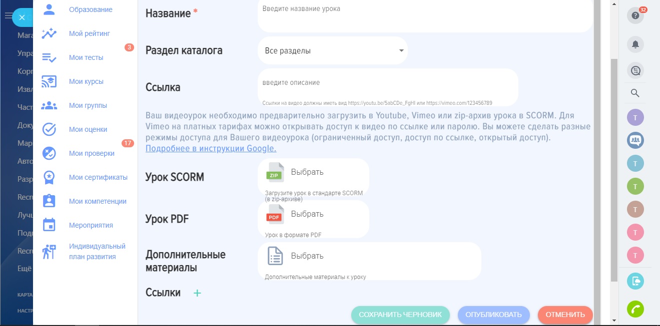 - Методические материалы. Добавляйте дополнительные методические материалы к курсам.
