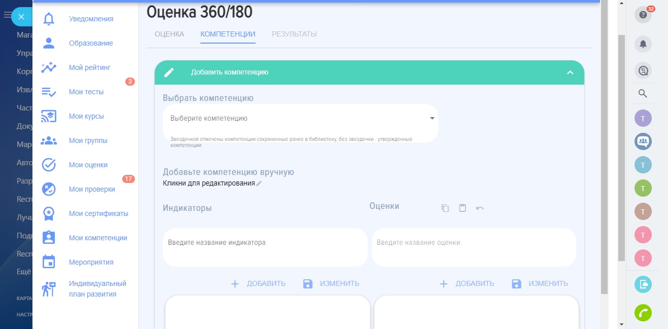 - Гибкие модели. Возможность организовать оценку 180/360 по корпоративным, управленческим, мягким, командным и другим компетенциям. В оценках могут принимать экстранет (внешние) пользователи.