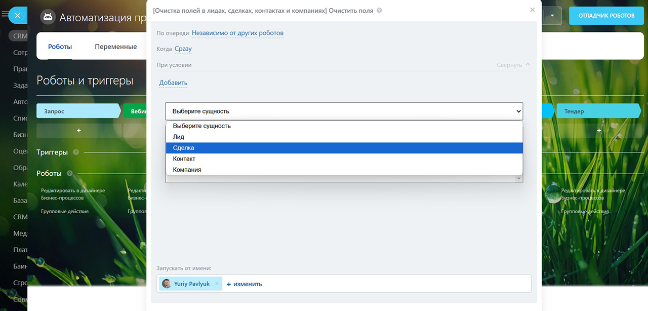 А с помощью умных сценариев можно переработать всю имеющуюся базу Сделок, Контактов или Компаний.