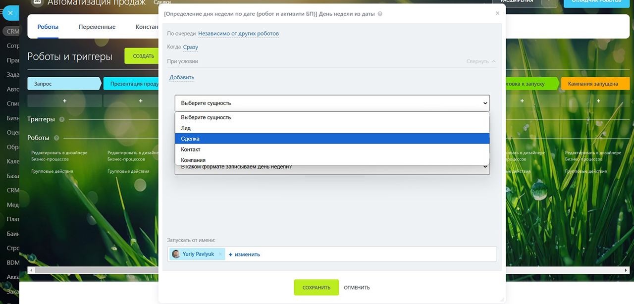 А с помощью умных сценариев можно переработать всю имеющуюся базу Лидов и/или Сделок.