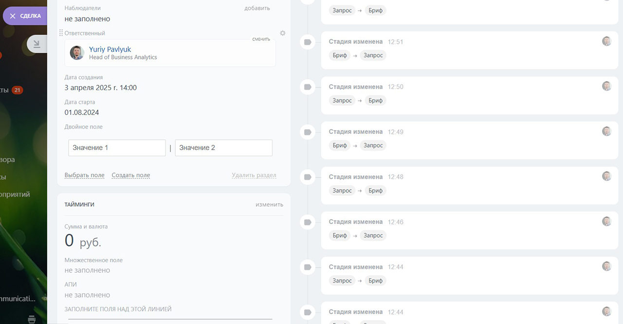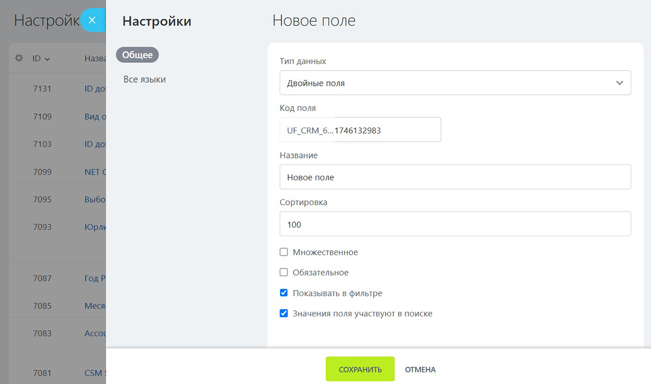 Двойные поля (2 в 1) в Лидах, Сделках и Смарт-процессах