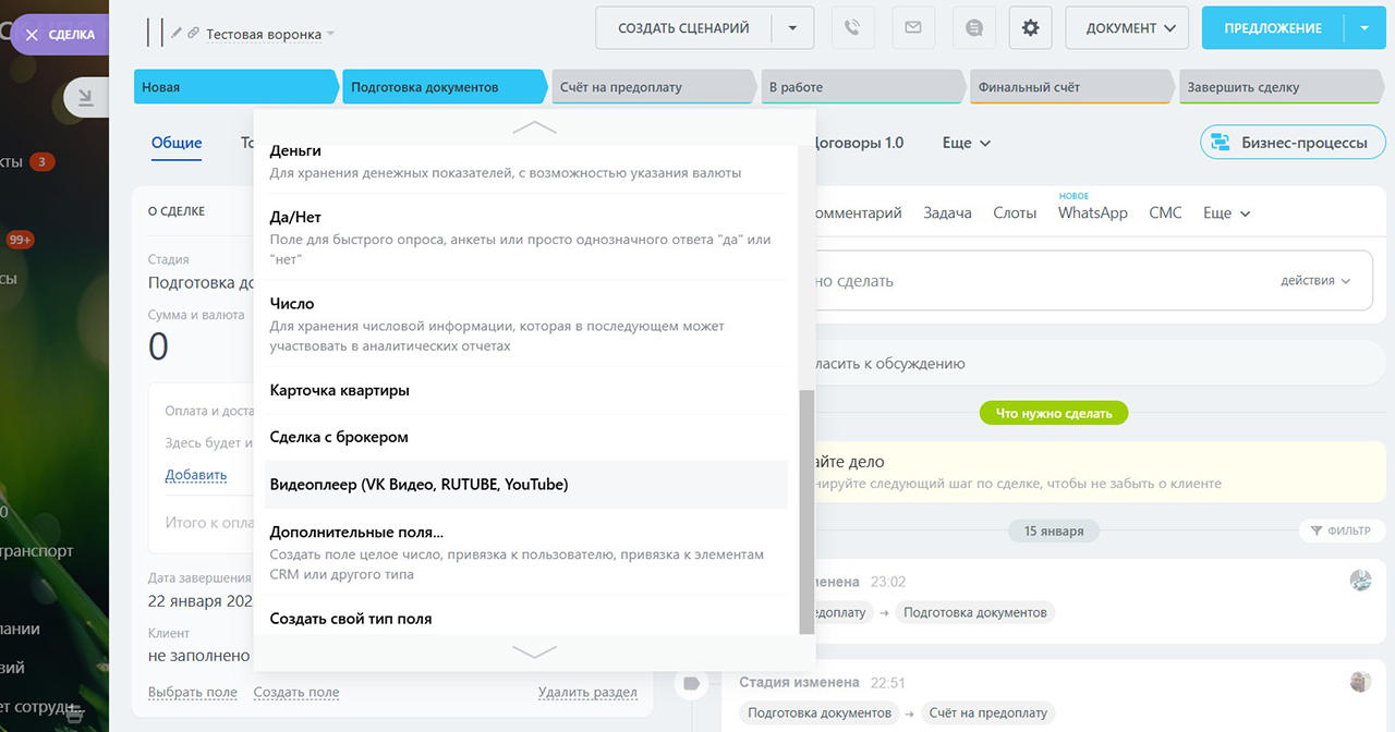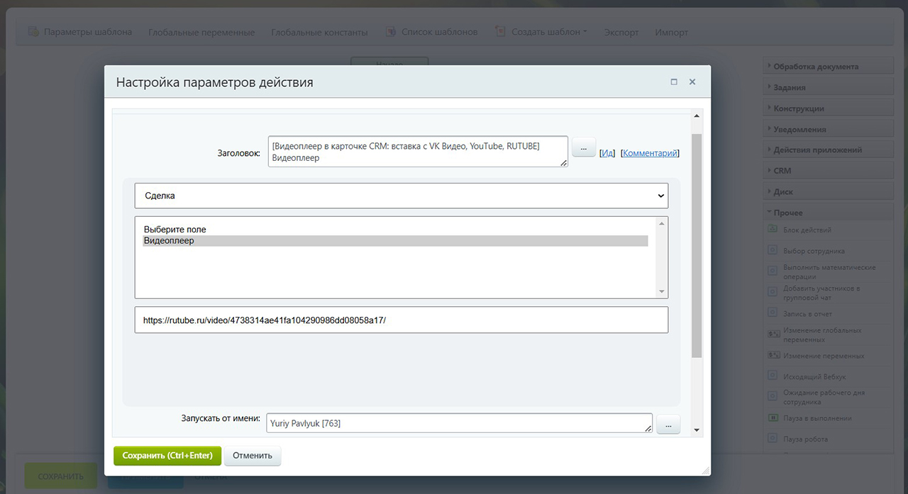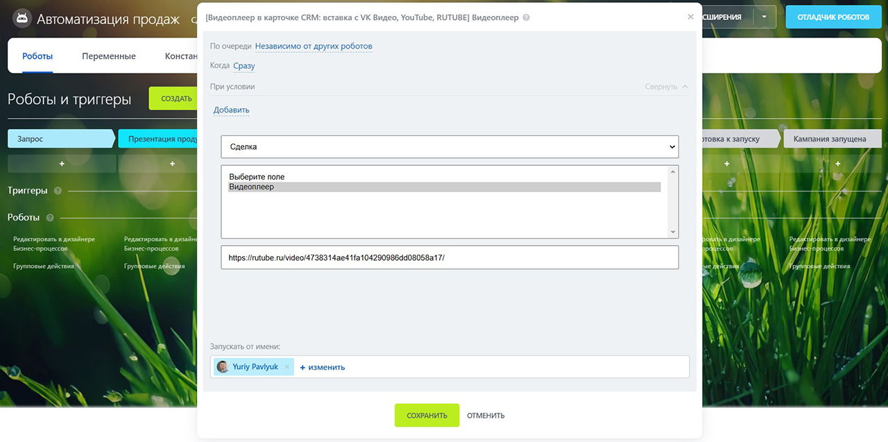 Добавление видео по ссылке в Лид, Сделку, Контакт, Компанию. Вручную, через робота и дизайнер бизнес-процессов