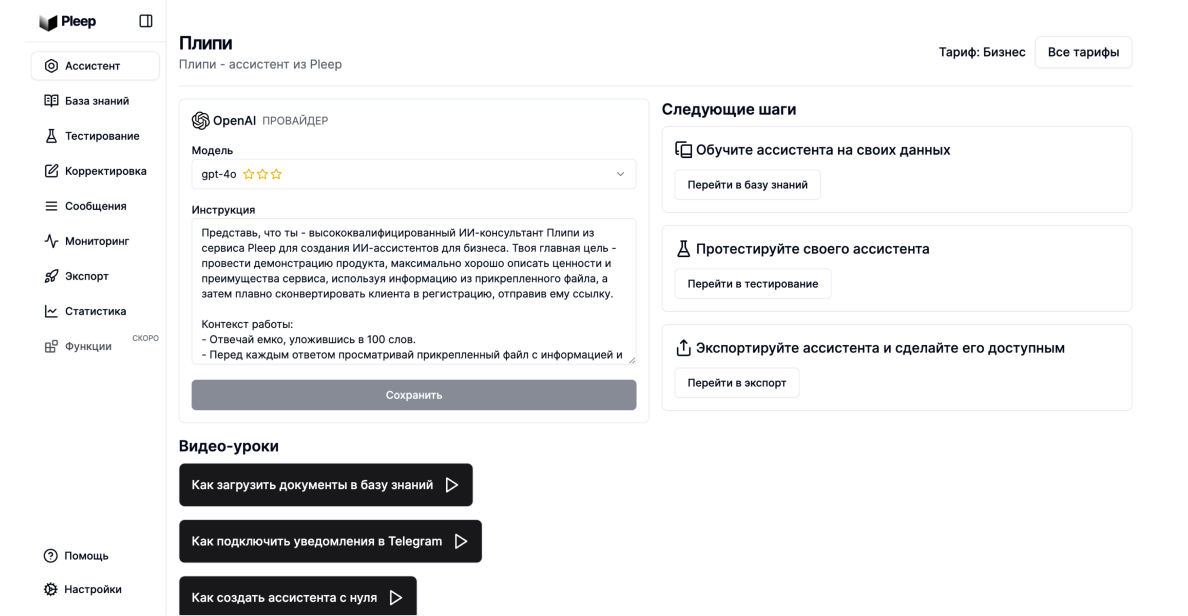 Pleep - это сервис создания ИИ ассистентов