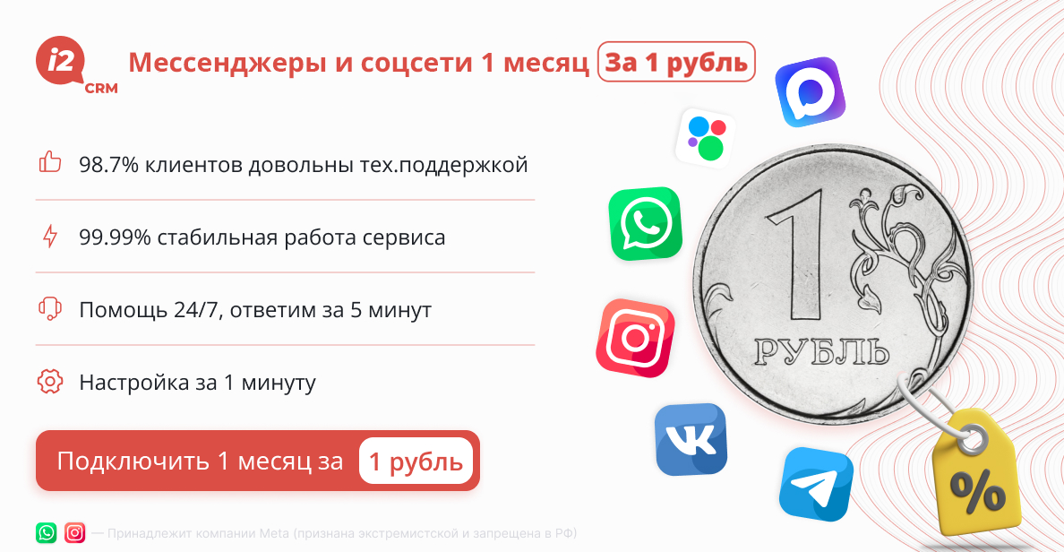 i2crm: интеграция WhatsApp, Telegram, Instagram, VK, Авито