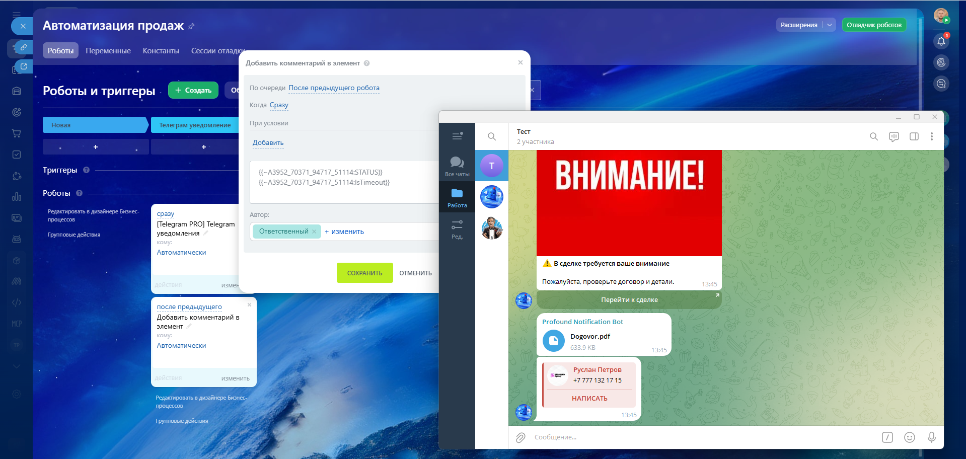 Telegram уведомления внутри CRM — быстро, просто, PRO!