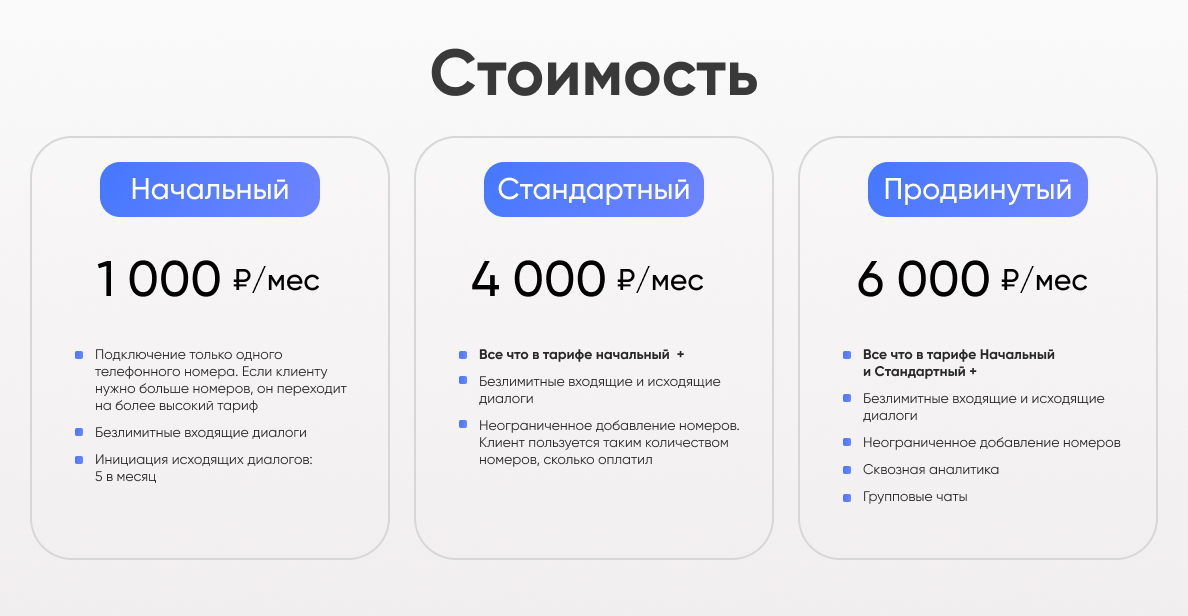 Подключайте несколько номеров: к каждой Открытой линии можно присвоить отдельный номер. Количество номеров для подключения не ограничено. Выберите нужные настройки и начните работу с клиентами. Вести переписку с клиентами можно с любого подключенного номера. Руководитель увидит, как общаются продавцы, а продавцы будут знать, что все под контролем.