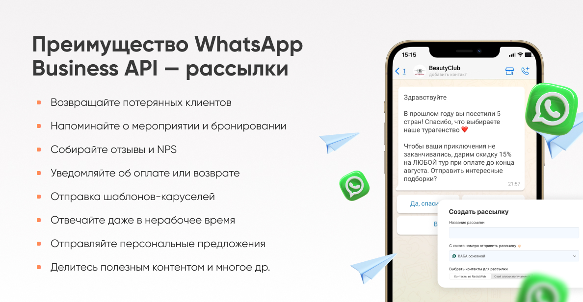 Пишите первым в WhatsApp без ограничений и согласований!