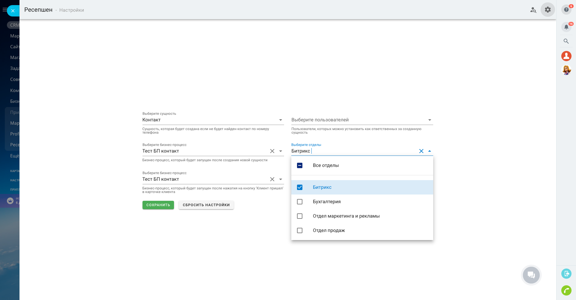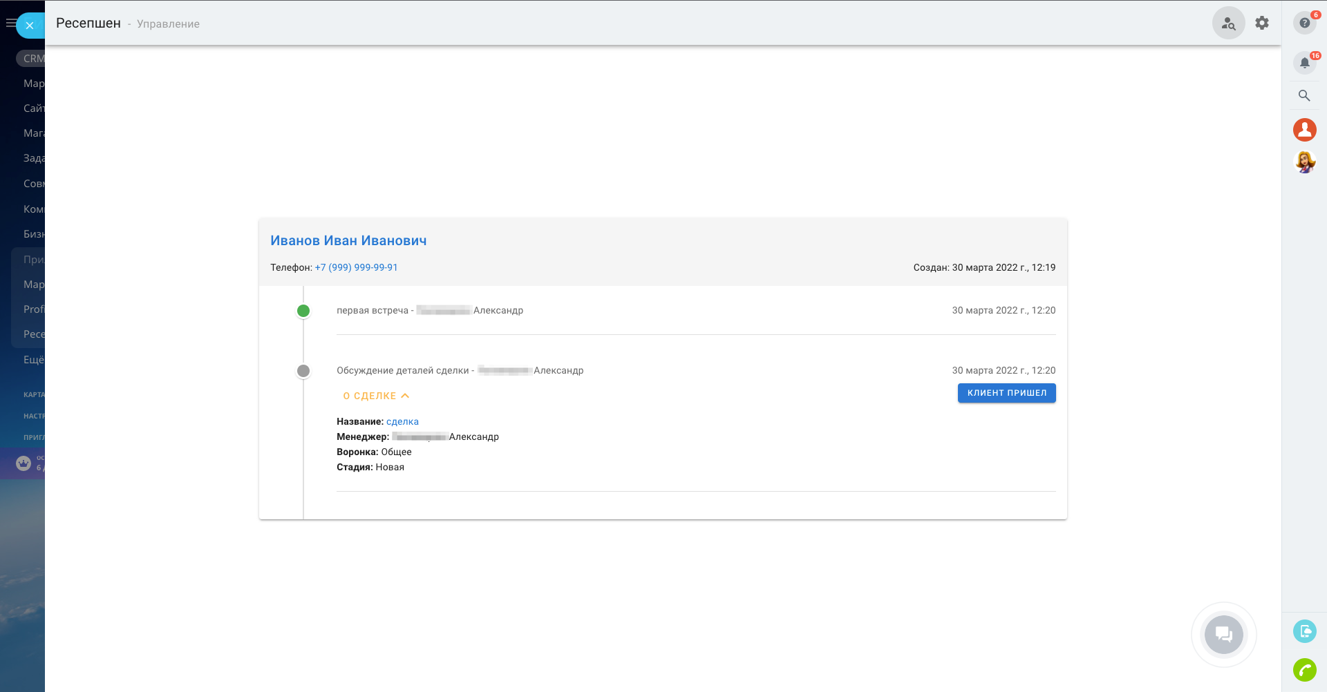Приложение "Ресепшн" дает возможность настраивать гибкие сценарии работы с пешеходами с помощью настроенных в вашей CRM бизнес-процессов.