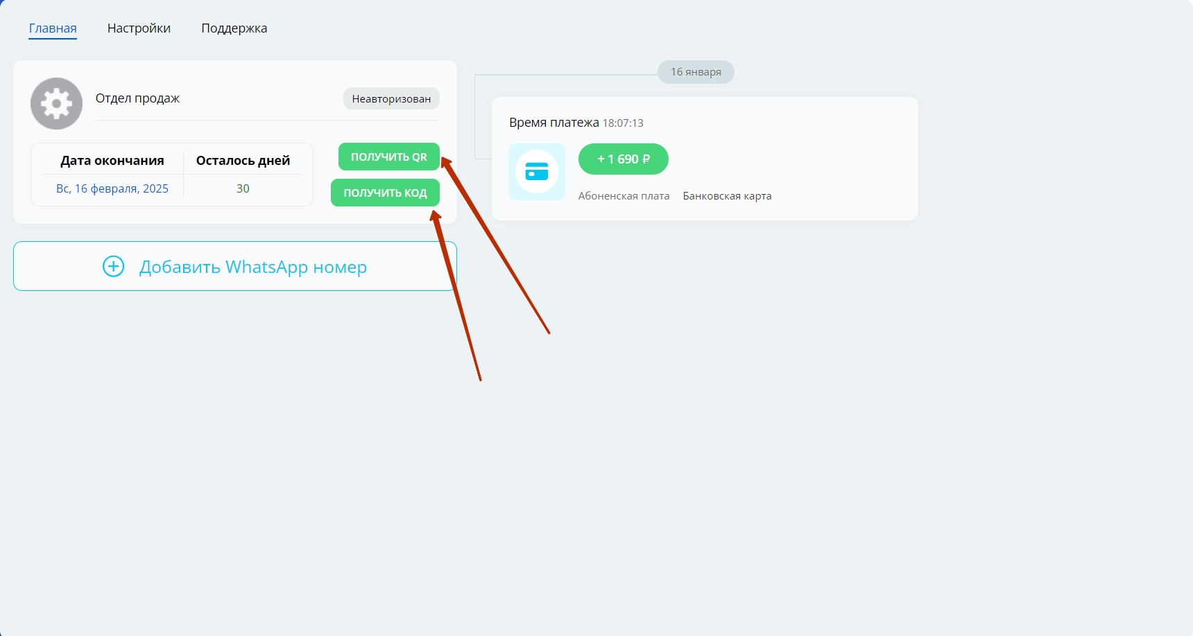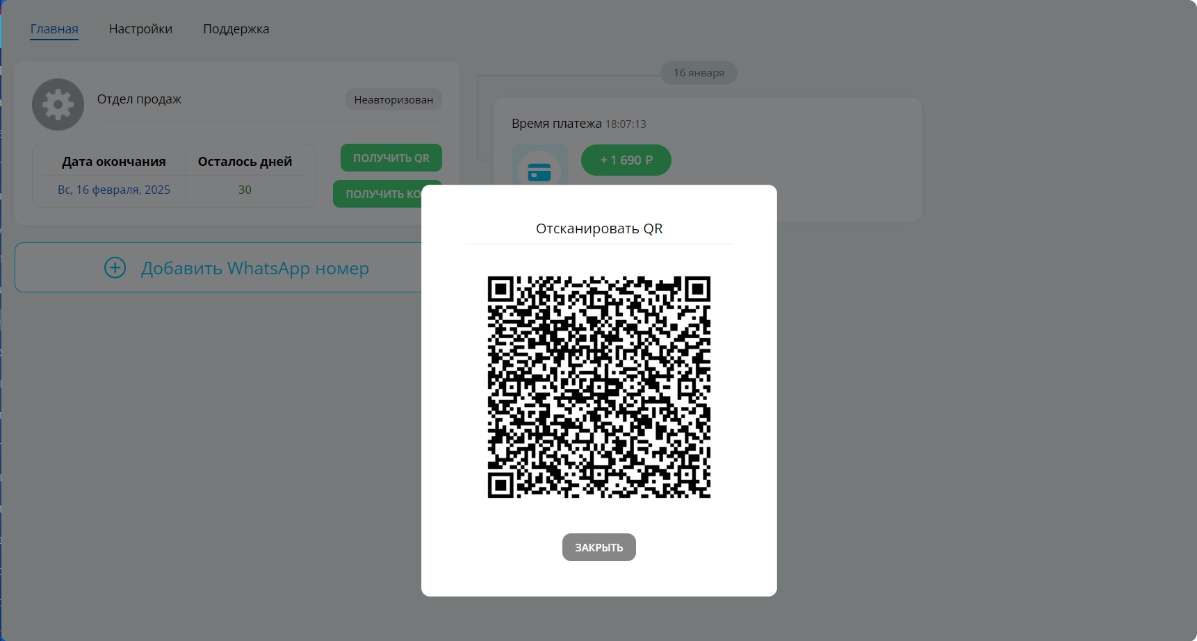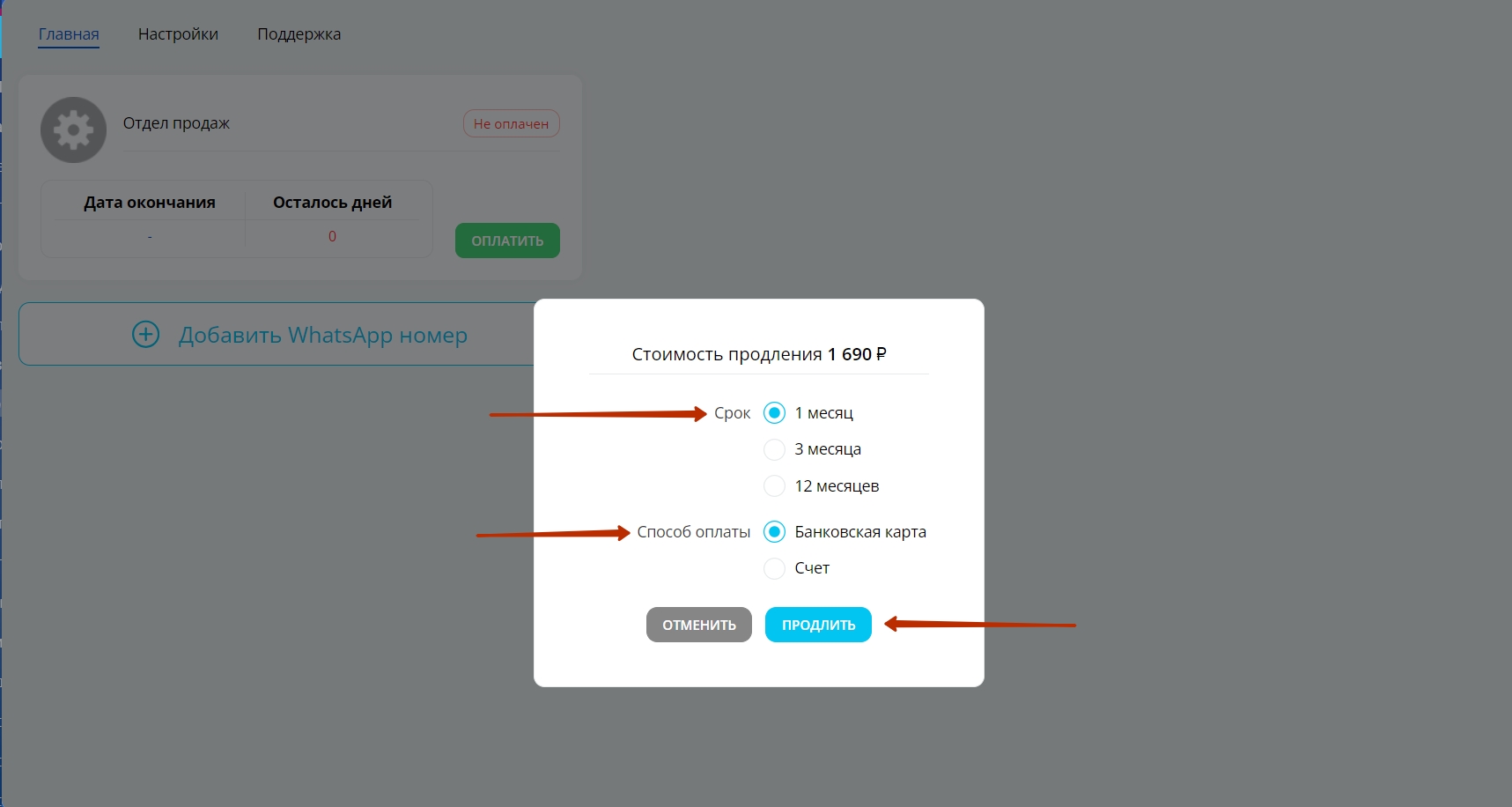 2 490 ₽ в месяц за один подключенный номер WhatsApp, даже при оплате за 1 месяц