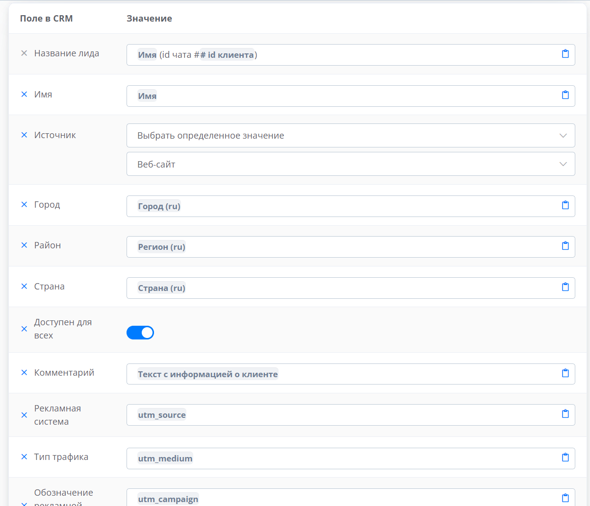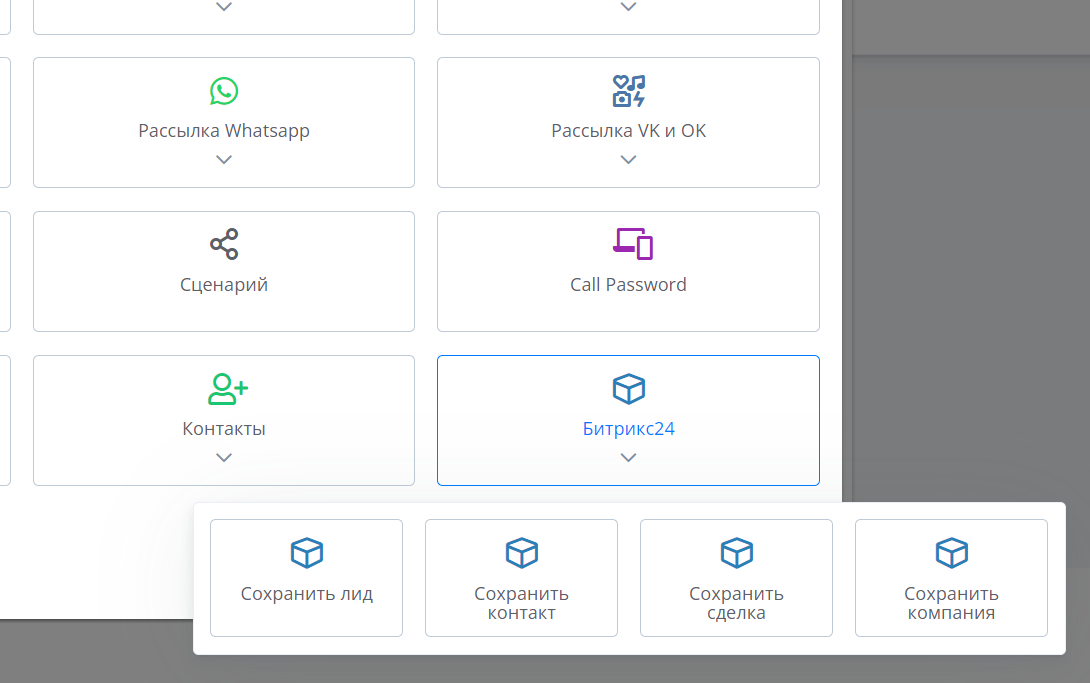 После настройки интеграции, в Битрикс24 можно будет выгружать лиды, контакты, компании, сделки.