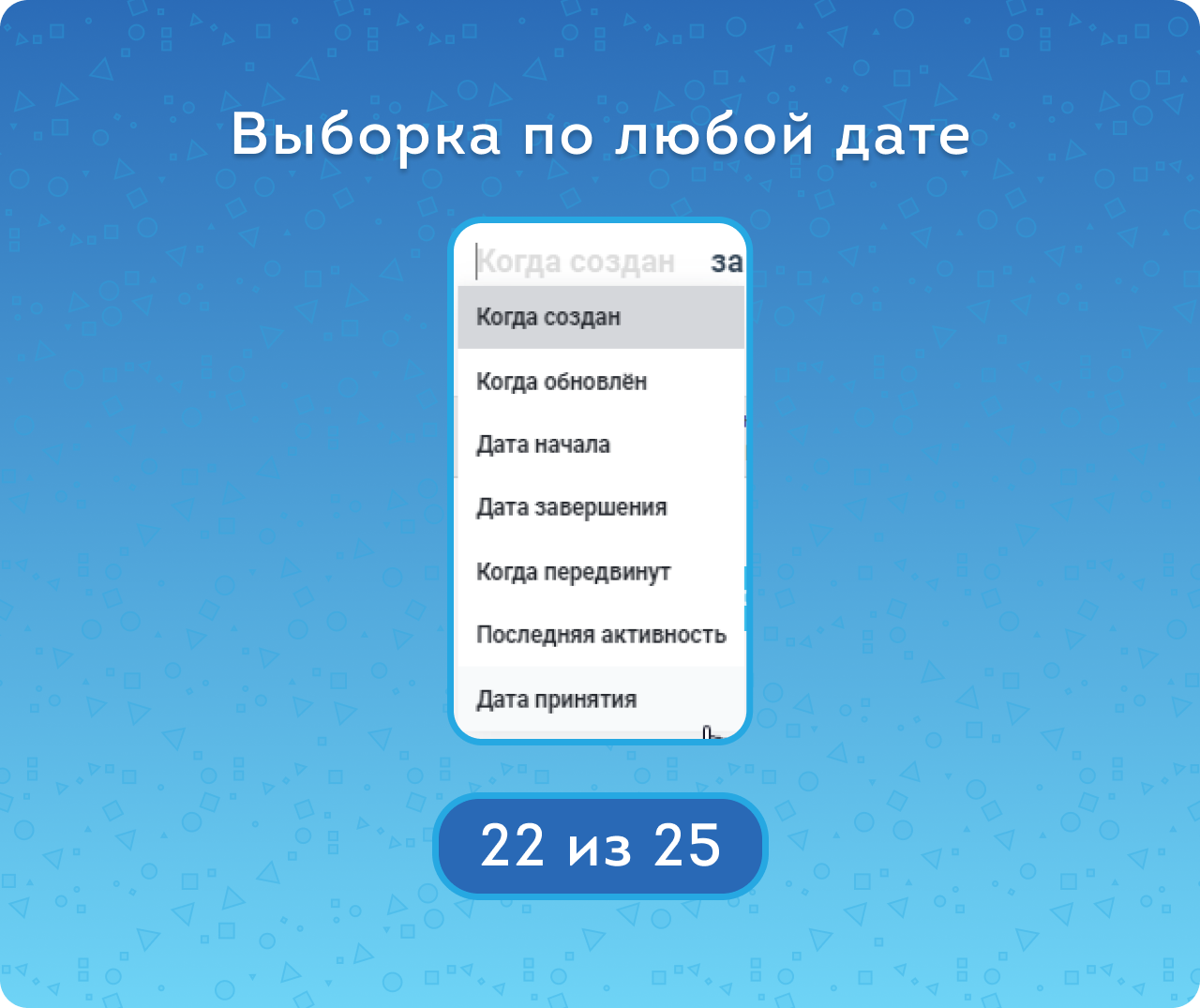 — Менять дату, по который происходит выборка данных. Например, выбирать элементы смарт-процессов по Дате обновления (а не только по Дате создания).