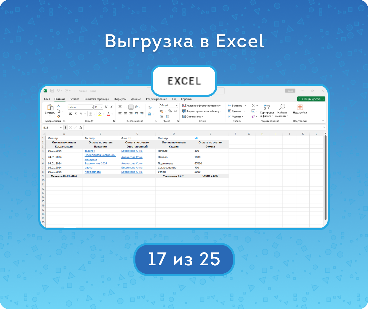 — Комбинировать поля и колонки так, как понадобится. Фильтровать, сортировать данные — и видеть только необходимую информацию.