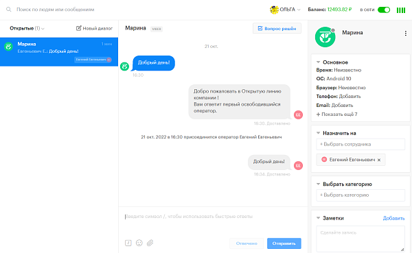 Диалог с каждым клиентом сохраняется в Битрикс24