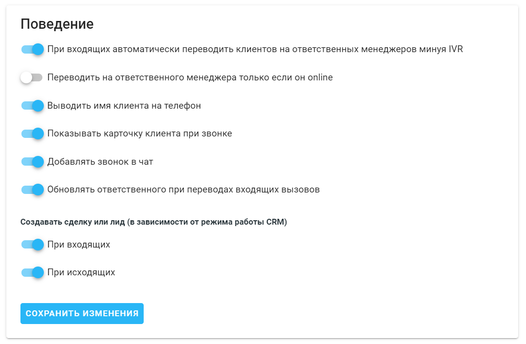 – возможность выбрать исходящую линию при совершении вызовов из карточки клиента;