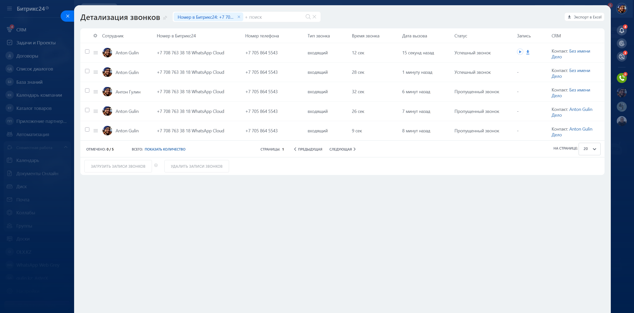 - Можно принимать входящие звонки от клиентов из WhatsApp непосредственно в интерфейсе Битрикс24