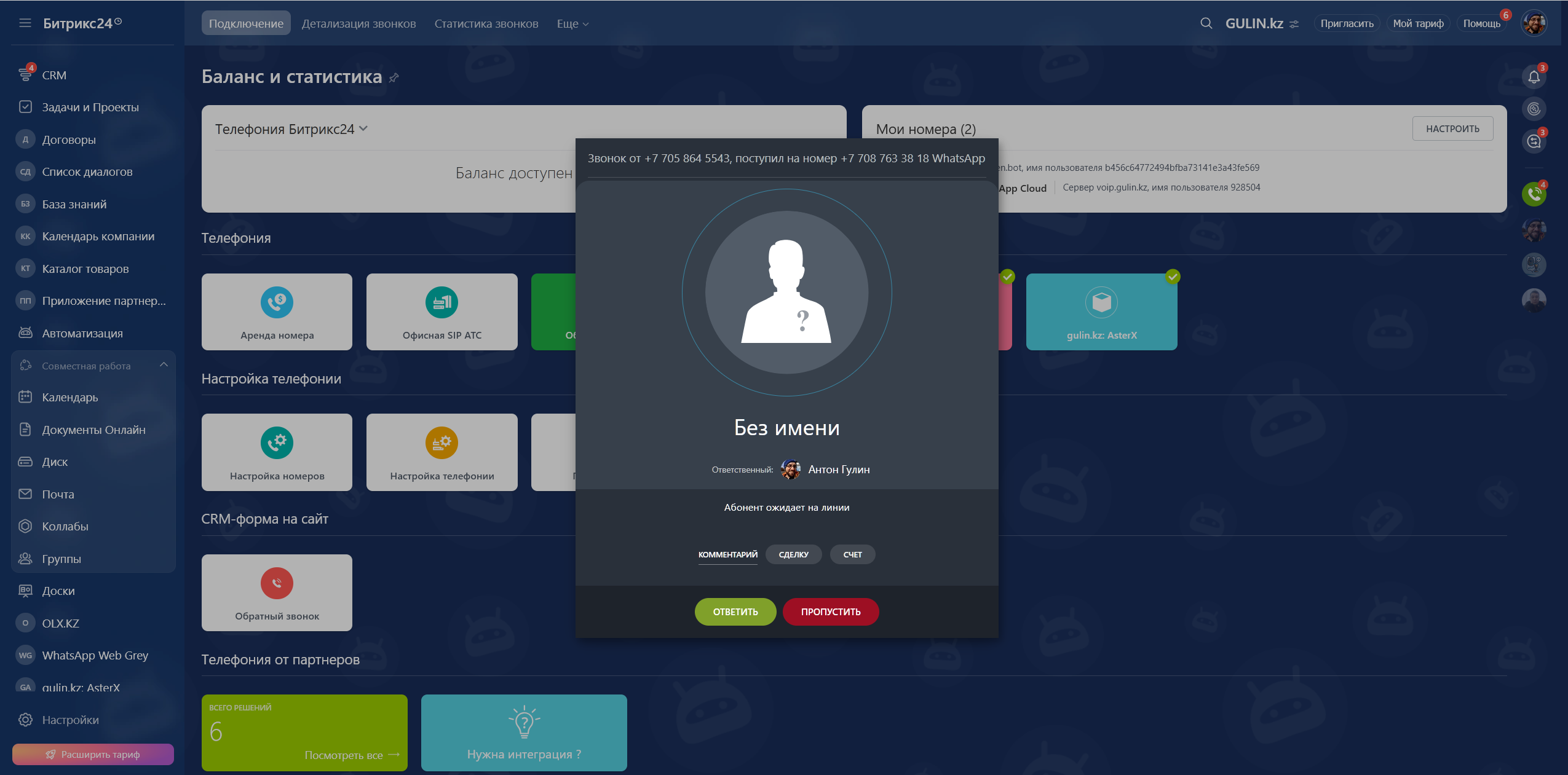 - Звонки из WhatsApp в Битрикс24 работают так же как любый другие SIP подключения