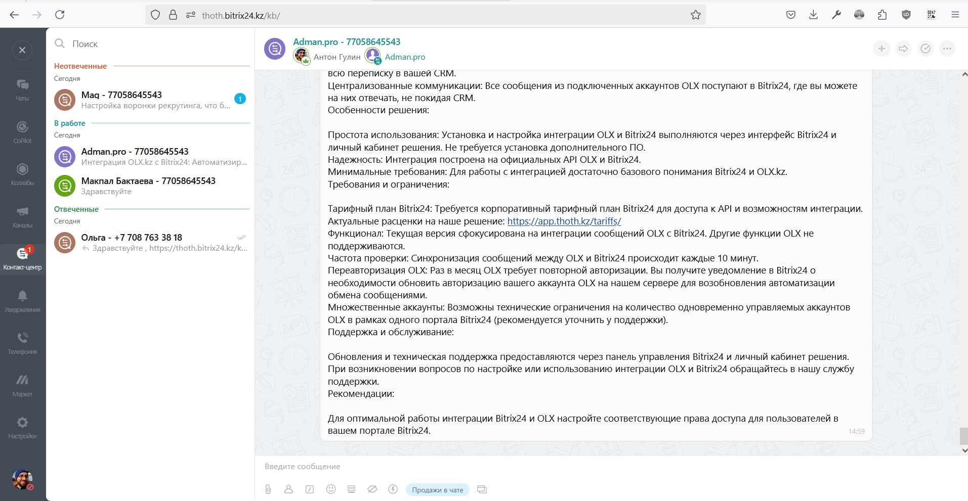 Простое и надёжное подключение CRM Битрикс24 к WhatsApp.