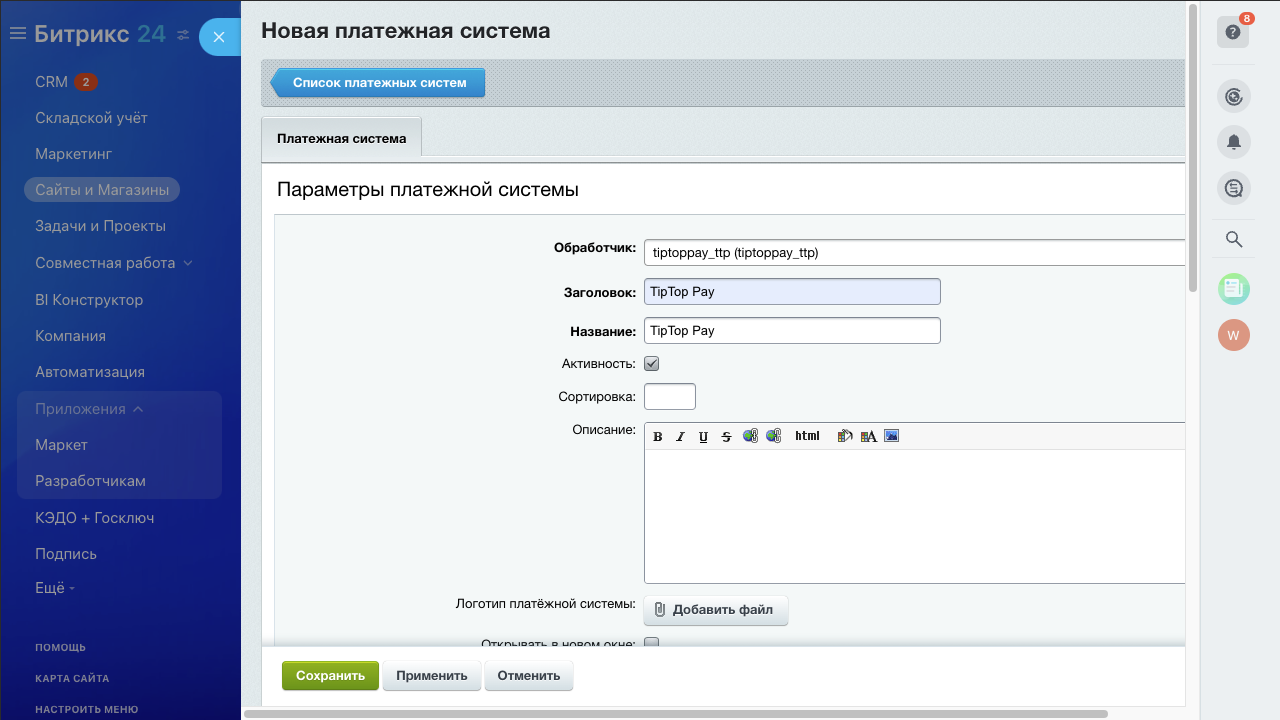 Модуль позволит с легкостью добавить в CRM платежный сервис TipTop Pay.
