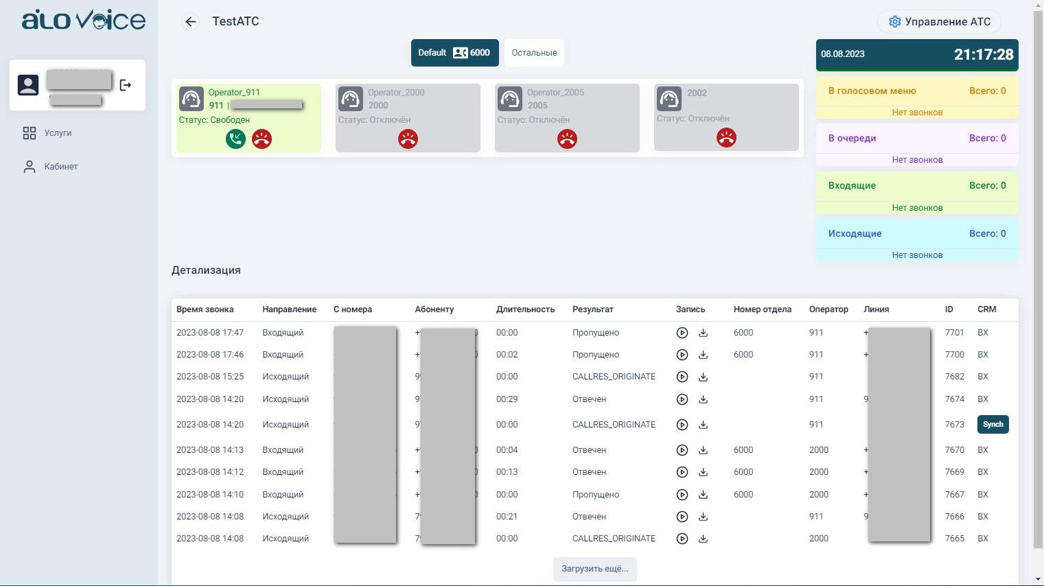 АloVoice - это бесплатная облачная-АТС на 2 пользователя, которая разворачивается автоматически и сразу готова к работе.