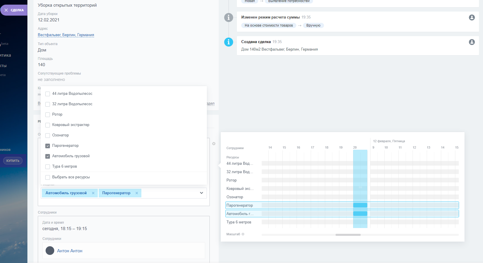 В данном решении бронирование ресурсов поможет с легкостью указать свободное время уборки без ошибок, это позволить контролировать свободное оборудование, которое у компании в ограниченном количестве.
